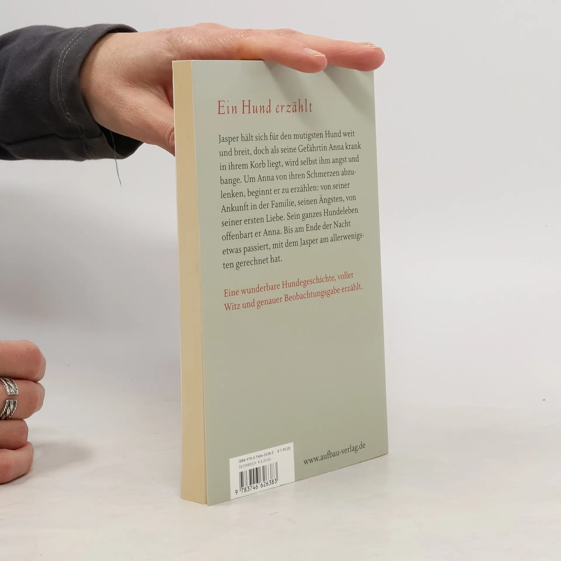 Ein Hund erzählt Jasper hält sich für den mutigsten Hund weit und breit, doch als seine Gefährtin Anna krank in ihrem Korb liegt, wird selbst ihm angst und bange. Um Anna von ihren Schmerzen abzulenken, beginnt er zu erzählen: von seiner Ankunft in der Familie, seinen Ängsten, von seiner ersten Liebe. Sein ganzes Hundeleben offenbart er Anna. Bis am Ende der Nacht etwas passiert, mit dem Jasper am allerwenigsten gerechnet hat. Eine wunderbare Hundegeschichte, voller Witz und genauer Beobachtungsgabe erzählt.