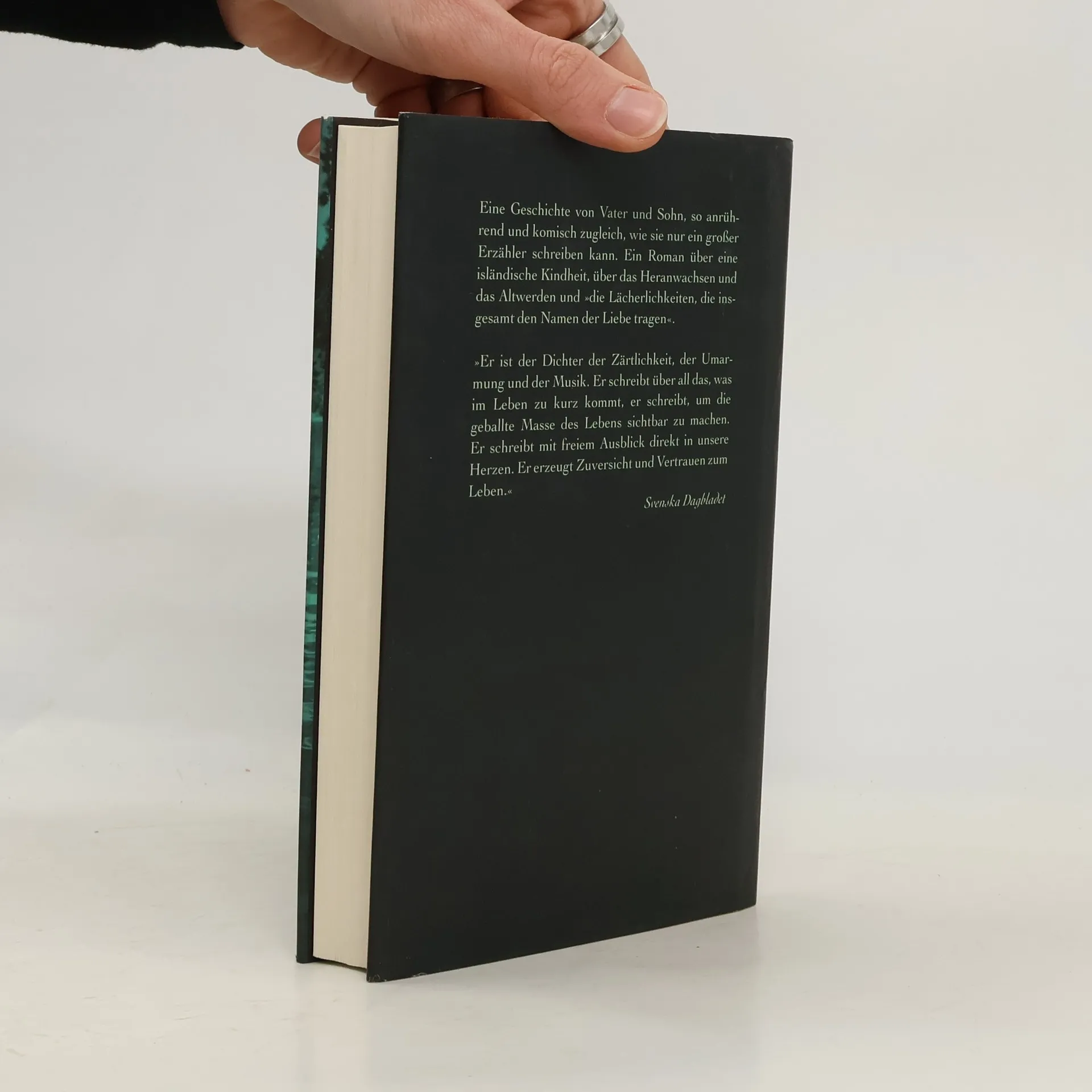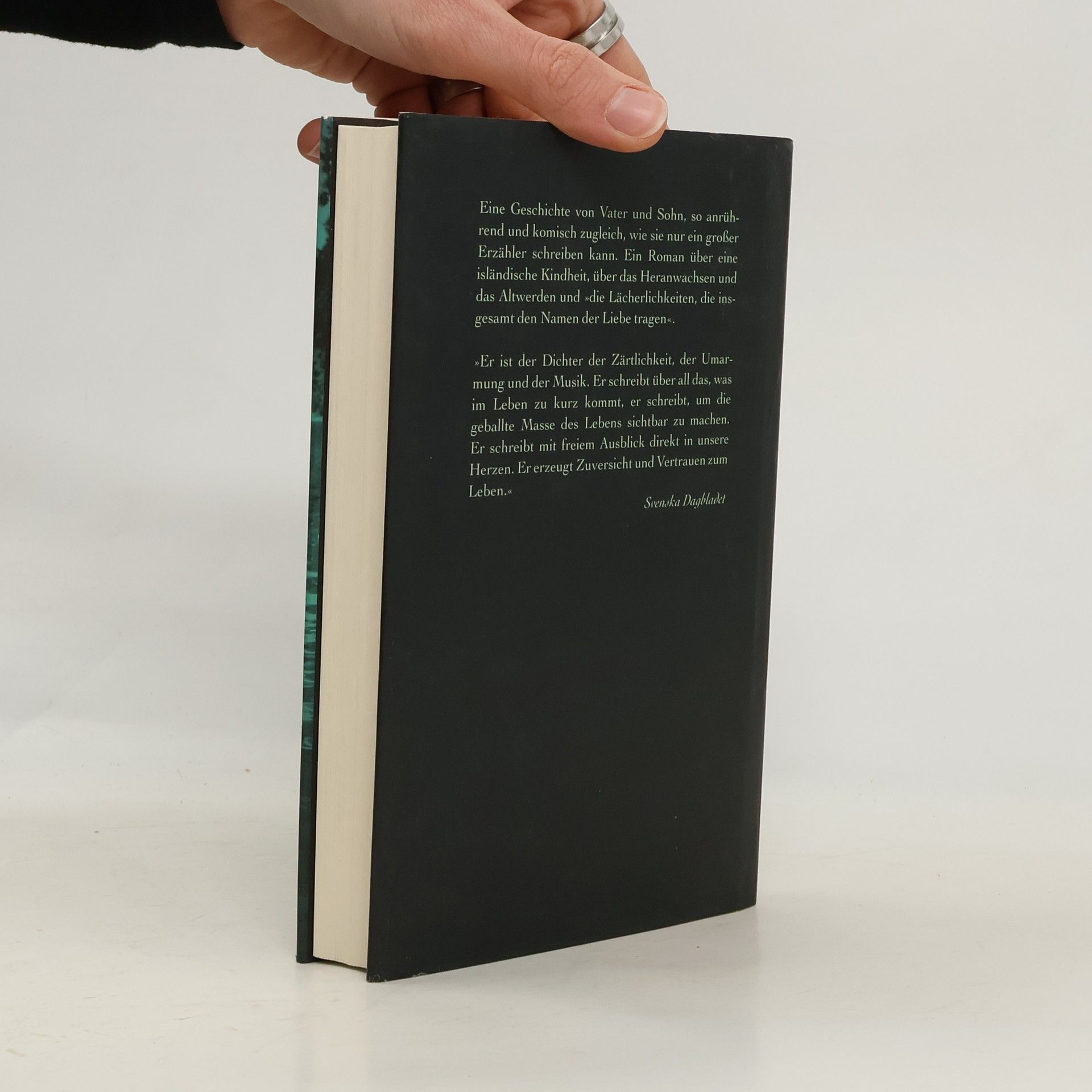 Als Hálldor den Vulkan Fretla besteigt, um die schöne Seismologin Lára zu interviewen, entsteht zwar kein brauchbares Interview, dafür wird auf einem Seehundsfell Pétur gezeugt. Lára verschwindet unmittelbar nach Péturs Geburt, und so übernimmt Hálldor die Mutterstelle. Ein Roman über eine isländische Kindheit, über das Heranwachsen und Älterwerden und »die Lächerlichkeiten, die insgesamt den Namen der Liebe tragen«. »Eine außergewöhnliche Vater-Sohn-Beziehung: dicht und sehr poetisch, mit einer schönen Spannung zwischen isländischer Sagenwelt und sehr normaler Gegenwart.« BRIGITTE