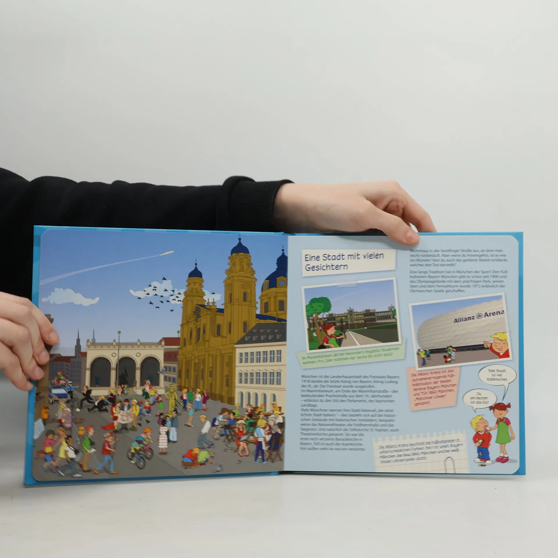 Die Buchreihe „Lilly und Anton“ präsentiert Kindern auf spannenden Wegen die reizvollsten Blickwinkel der unterschiedlichen Zielorte: Wissbegierig durchstreifen die beiden Protagonisten im Alter von 5 und 8 Jahren die schönsten Städte und Regionen Europas und halten ihre Erlebnisse mit dem Fotoapparat fest. Ihre zweite Reise führt Lilly und Anton nach München. Die bayrische Hauptstadt bietet eine Fülle an Sehenswürdigkeiten sowie spektakuläre kulturelle und wissenschaftliche Einrichtungen, von denen die interessantesten im Reisewimmelalbum vorgestellt werden. Thematisch klar gegliedert entdecken die Leser und Betrachter von Kapitel zu Kapitel die Besonderheiten der Stadt und der Menschen, die dort leben.
