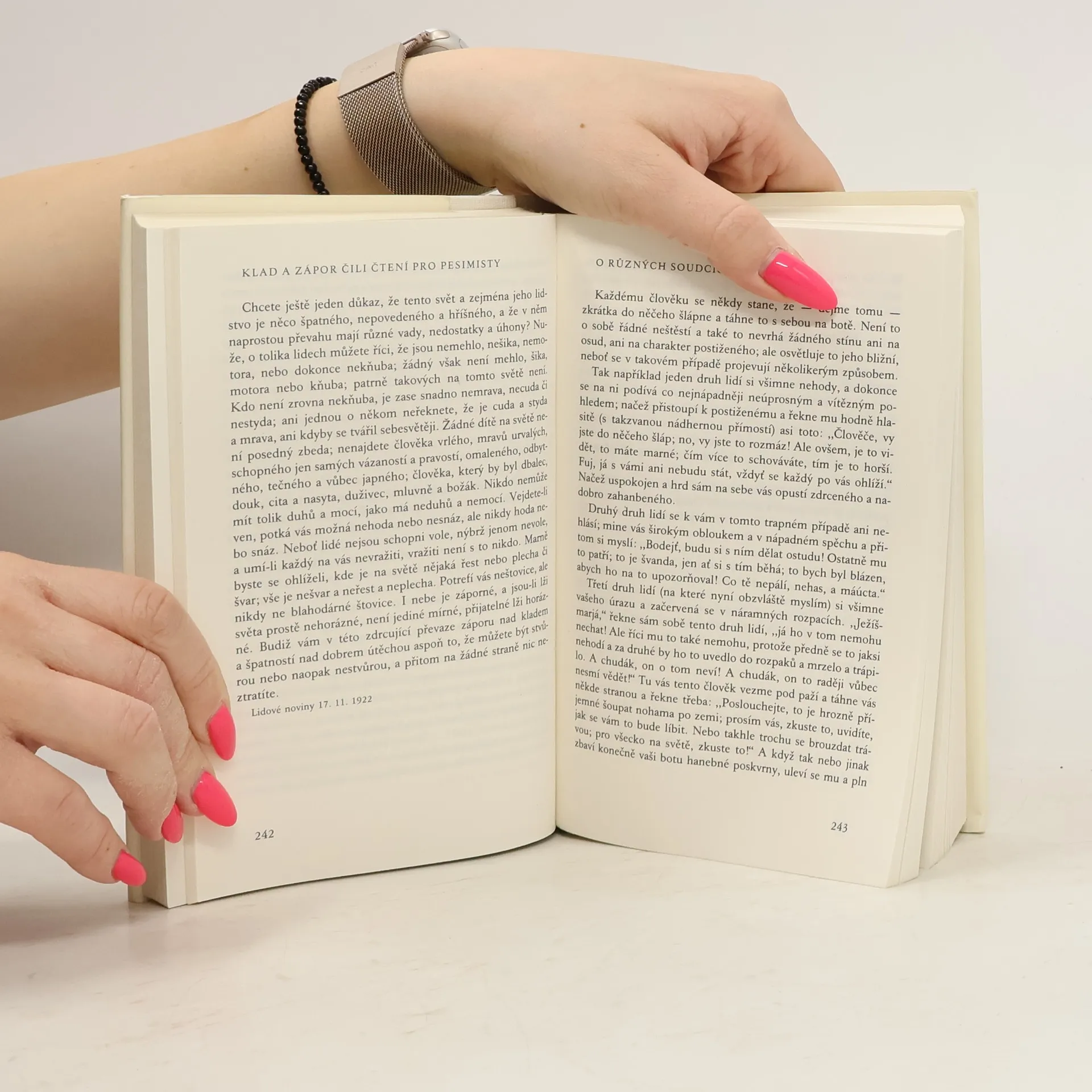 Chronologicky uspořádaný a v podstatě vyčerpávající přehled článků, glos, sloupků, úvah a studií, v nichž se Karel Čapek na stránkách novin vyjadřoval o jevech každodenního života, o společenském dění, mezilidských vztazích, národním životě, politických otázkách a dalších obecných i zcela zvláštních a jedinečných problémech své doby. I. díl