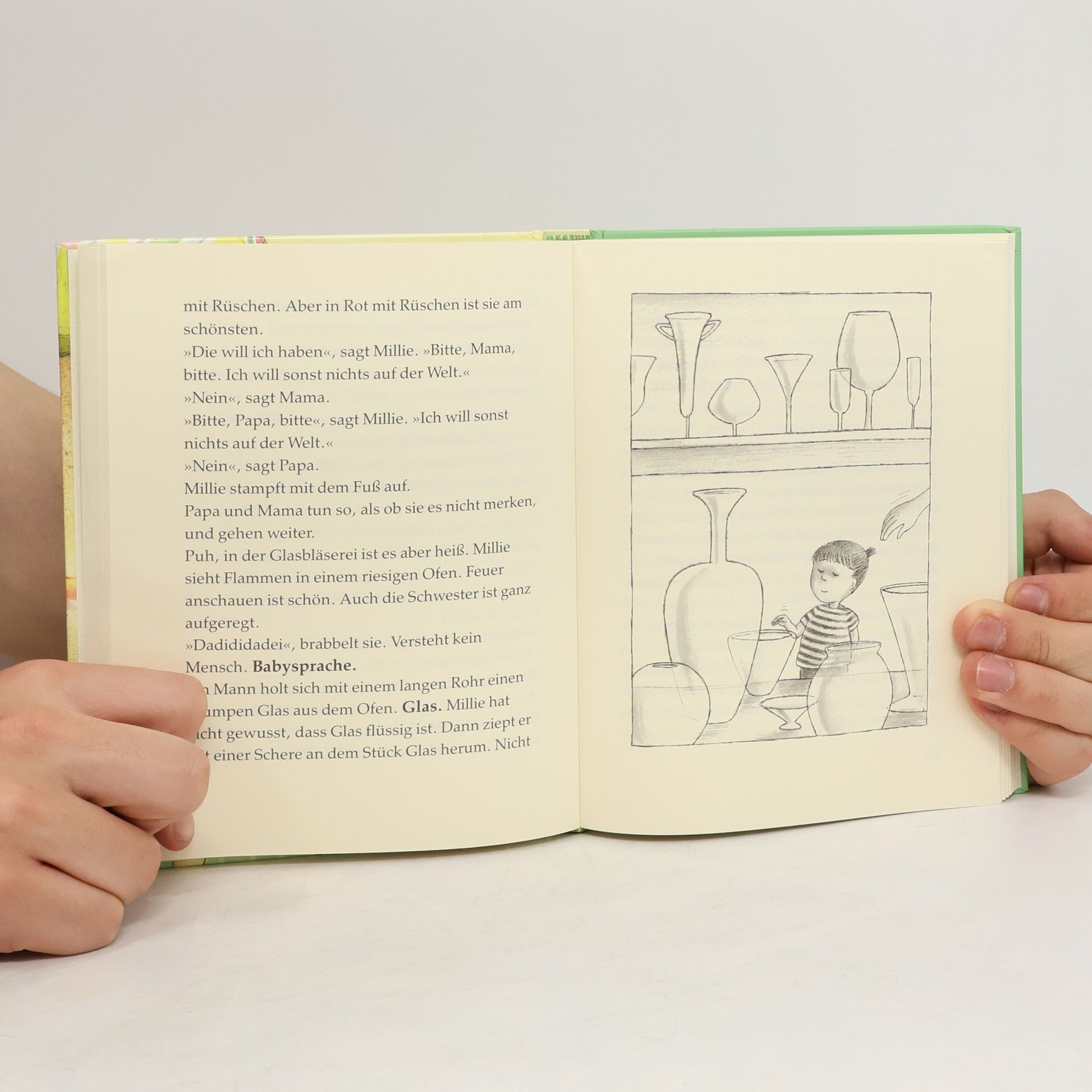 Eigentlich wollte Millie ja an den Amazonas. Aber der ist leider zu weit weg. Also fährt sie mit Mama, Papa und der kleinen Schwester nach Mallorca. Als Erstes lernt Millie schwimmen. Sie braucht nur die Arme und Beine zu bewegen. Pickepacke leicht. Dann besichtigen sie natürlich noch dies und das. Zum Beispiel das Kloster, in dem früher ein Herr Schopängpängpäng Klavier gespielt hat. Und überall auf Mallorca trifft Millie Miss Mandarella, eine wunderschöne Puppe, in Rot mit Rüschen. Das wär doch ein gutes Andenken, oder?