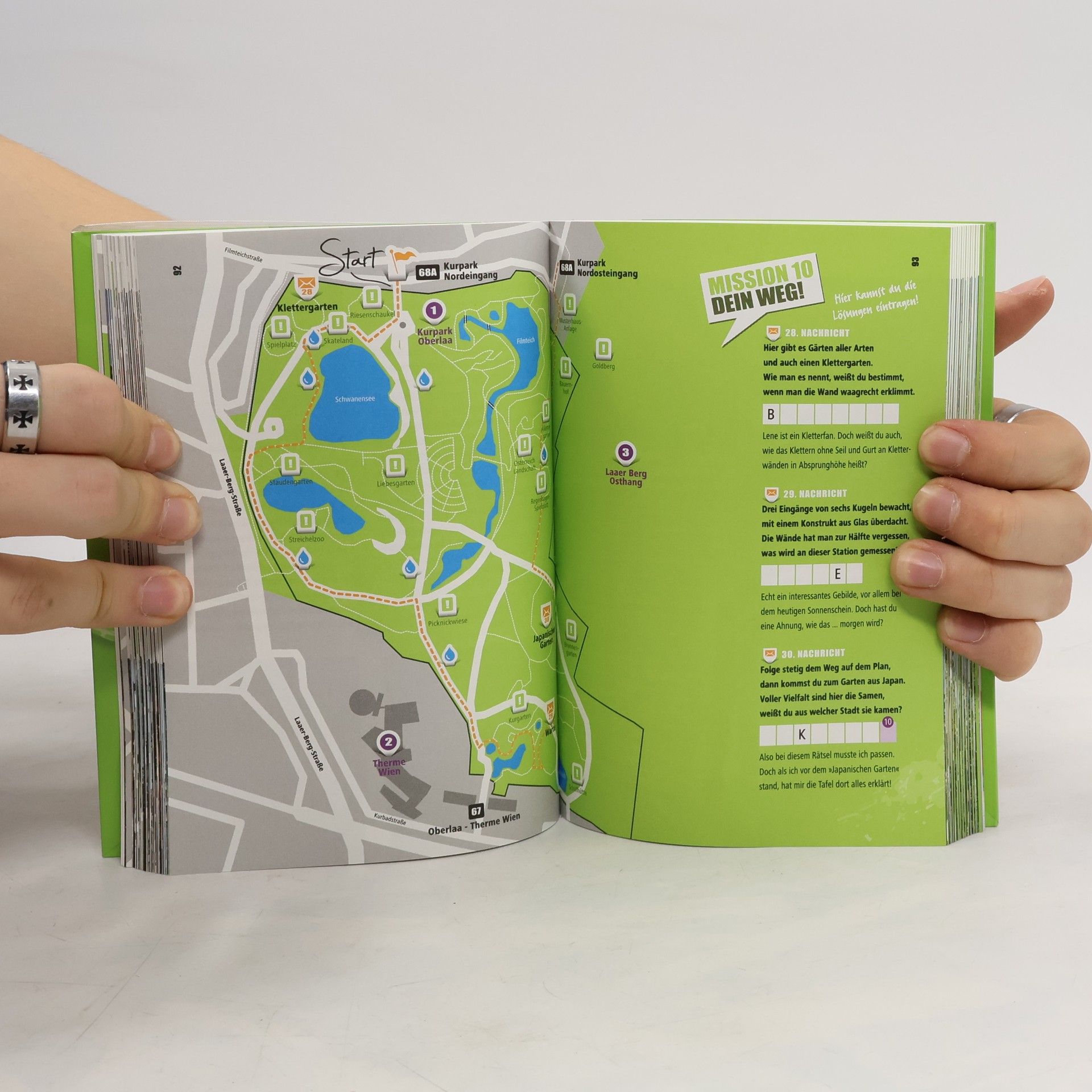 Willst du mit mir GEHen? Die Frage könnte jetzt ganz einfach mit einem glücklichen 'JA' oder einem bitteren 'NEIN' beantwortet werden. Möglicherweise ist es aber ein unsicheres 'VIELLEICHT'. Doch du kannst auch eine Gegenfrage stellen: 'WOHIN denn?' Dann bist du sicher ein WildUrb. Was das ist? Tja, das fragen sich Ruven und Lene in dieser Geschichte auch. Denn nur wegen den mysteriösen Rätseln, die ihnen ein geheimnisvoller WildUrb sendet, stolpern die beiden Kids von einem Abenteuer ins nächste. Durch ganz Wien werden sie gejagt, bis die Gehirnwindungen krachen und die Füße brennen. Alles, um einen verborgenen Schatz zu finden. Doch existiert dieser wirklich? Oder hat WildUrb etwas ganz anderes mit ihnen vor. 'Nachurben' erlaubt! 23 Routen durch alle Bezirke Wiens zum Nachgehen (mit Plänen), 69 Rätsel zum Selberlösen mit viel Hintergrundinformation über die Stadt und einer spannenden Story!