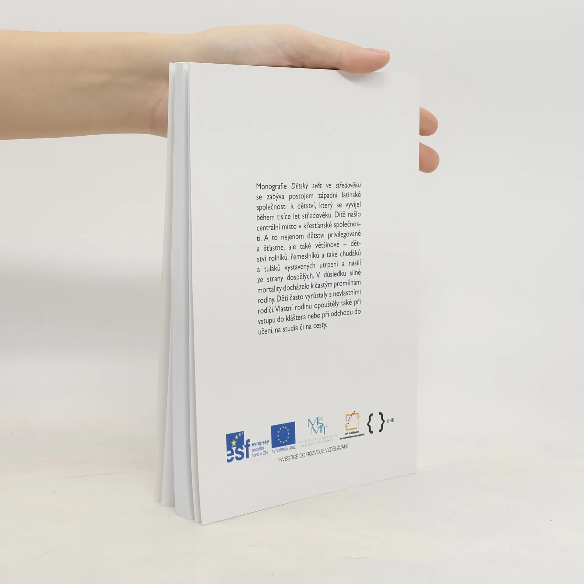 Monografie se zabývá postojem západní latinské společnosti k dětství, který se vyvíjel během tisíce let středověku. Dítě našlo centrální místo v křesťanské společnosti. A to nejenom dětství privilegované a šťastné, ale také většinové - dětství rolníků, řemeslníků a také chudáků a tuláků vystavených utrpení a násilí ze strany dospělých. V důsledku silné mortality docházelo k častým proměnám rodiny. Děti často vyrůstaly s nevlastními rodiči. Vlastní rodinu opouštěly také při vstupu do kláštera nebo při odchodu do učení, na studia či na cesty.