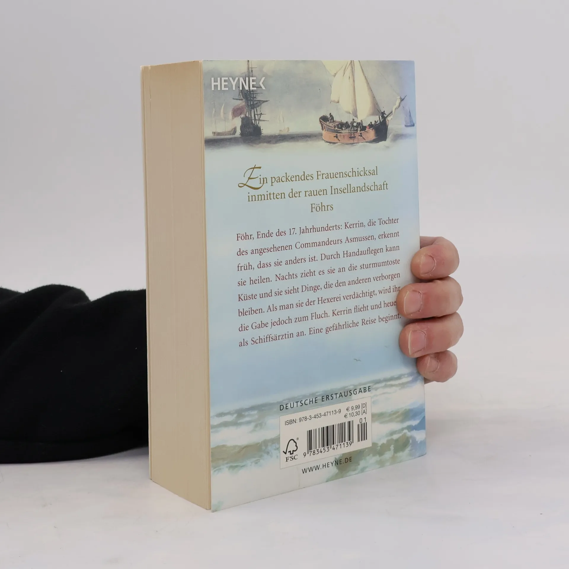 Ein packendes Frauenschicksal in der rauen Insellandschaft Föhrs Föhr, Ende des 17. Jahrhunderts: Kerrin, die Tochter des angesehenen Kommandeurs Asmussen, erkennt früh, dass sie anders ist. Durch Handauflegen kann sie heilen. Nachts zieht es sie an die sturmumtoste Küste und sie sieht Dinge, die den anderen verborgen bleiben. Als man sie der Hexerei verdächtigt, wird ihr die Gabe jedoch zum Fluch. Kerrin flieht und heuert als Schiffsärztin an. Eine gefährliche Reise beginnt.