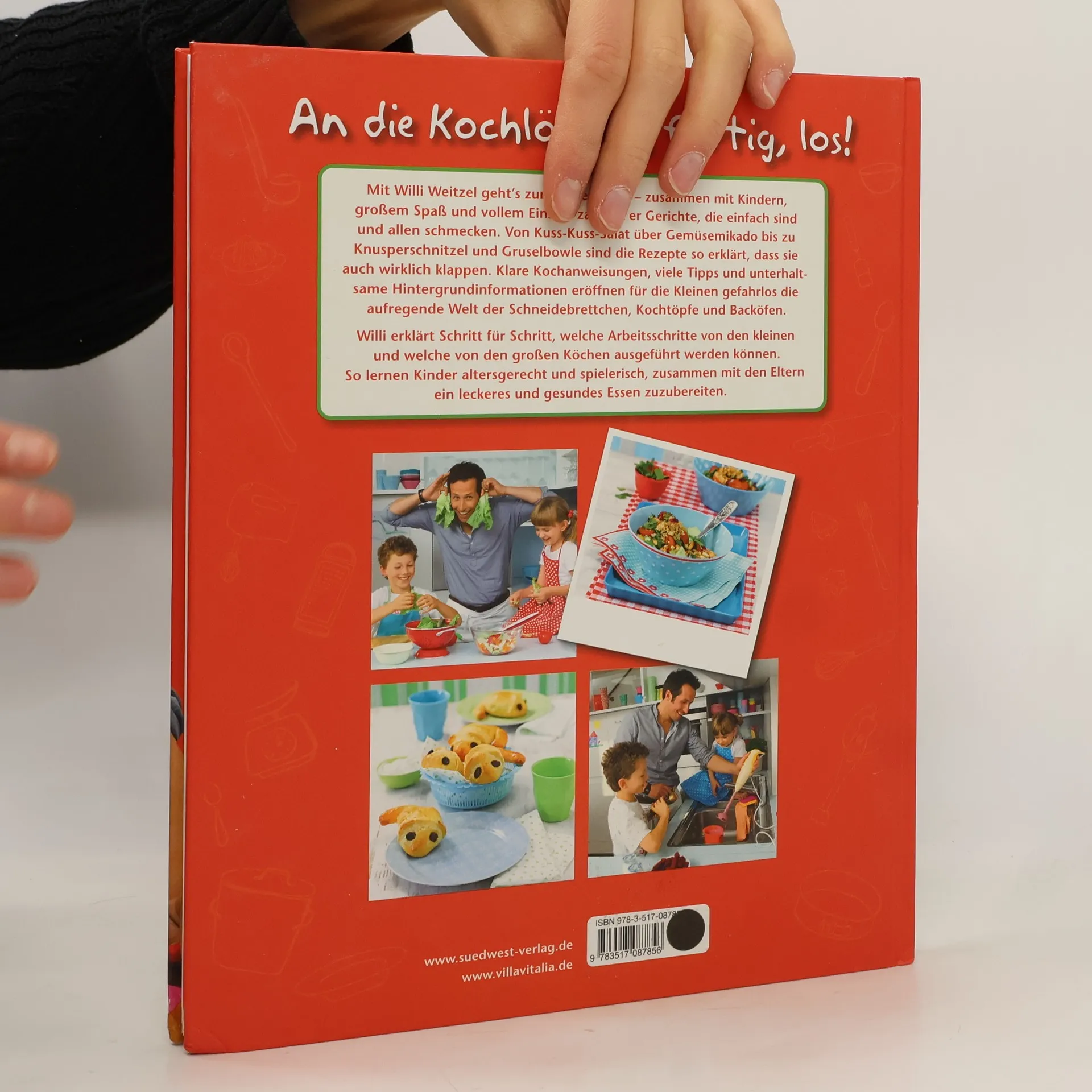 Willi weiß, was Kindern schmeckt Willi Weitzel kocht – und das mit vollem Einsatz und der Unterstützung von Kindern! Denn hier geht’s zur Küchensache: mit tollen Gerichten, die Kindern schmecken und Rezepten mit einfachen, klaren Anweisungen und Tipps, sodass die Kleinen beim Einkaufen über das Kochen bis zum Tischdecken zu ganz großen Helfern werden. Willi erklärt Schritt für Schritt, wie Kinder in der Küche spielerisch, altersgerecht, sinnvoll und sicher eingebunden werden können. Dazu holt sich Willi für die Kleinsten Rat und Antworten vom Profikoch Jürgen Füssl und führt unterhaltsam und informativ durch das Buch. Denn schon einfache Tricks erleichtern die Arbeit mit Kindern in der Küche für beide und machen das gemeinsame Zubereiten von Mahlzeiten zu einem schönen Erlebnis – so können Kinder auch für gesundes Essen begeistert werden! Ausstattung: ca. 40 Farbfotos