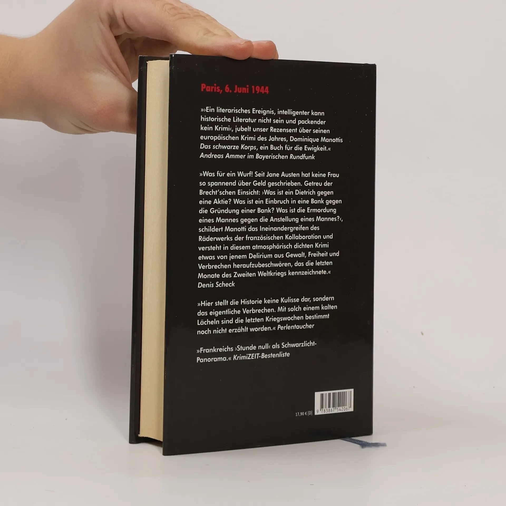 6. Juni 1944: Noch geht Paris an diesem sonnigen Frühsommertag ungerührt seinen Geschäften nach: Die französische Gestapo verhaftet einen amerikanischen Offizier. Vorm Büro ihres Chefs Deslauriers stehen Bittsteller aus Geschäfts- und Halbwelt Schlange. Am Abend hält die schöne Dora Belle, Geliebte eines SS-Hauptsturmführers und zweitklassige Schauspielerin, ihren Salon. Hier trifft sich die Führung von SS und Wehrmacht mit Vertretern von Industrie, Finanzwelt und Kultur: elegantes Dekor, ausgesuchte Delikatessen, Champagner, Sex. Inspecteur Domecq von der Sitte, Verbindungsmann des gaullistischen Widerstands, nutzt den Abend, um Witterung aufzunehmen. Denn nicht nur militärisch steht die entscheidende Schlacht bevor. In Erwartung der deutschen Niederlage müssen Besatzer und Kollaborateure ihren Besitz, ihre Reputation oder auch nur ihre nackte Haut retten. Manches lässt sich mit Geld regeln oder bei einem guten Tropfen. Aber bald fließt mehr Blut als Champagner … Manotti erzählt von deutscher Besatzung und französischer Kollaboration, von den Verlierern, den Davongekommenen und denen, die sich unweigerlich immer im Lager der Sieger finden.