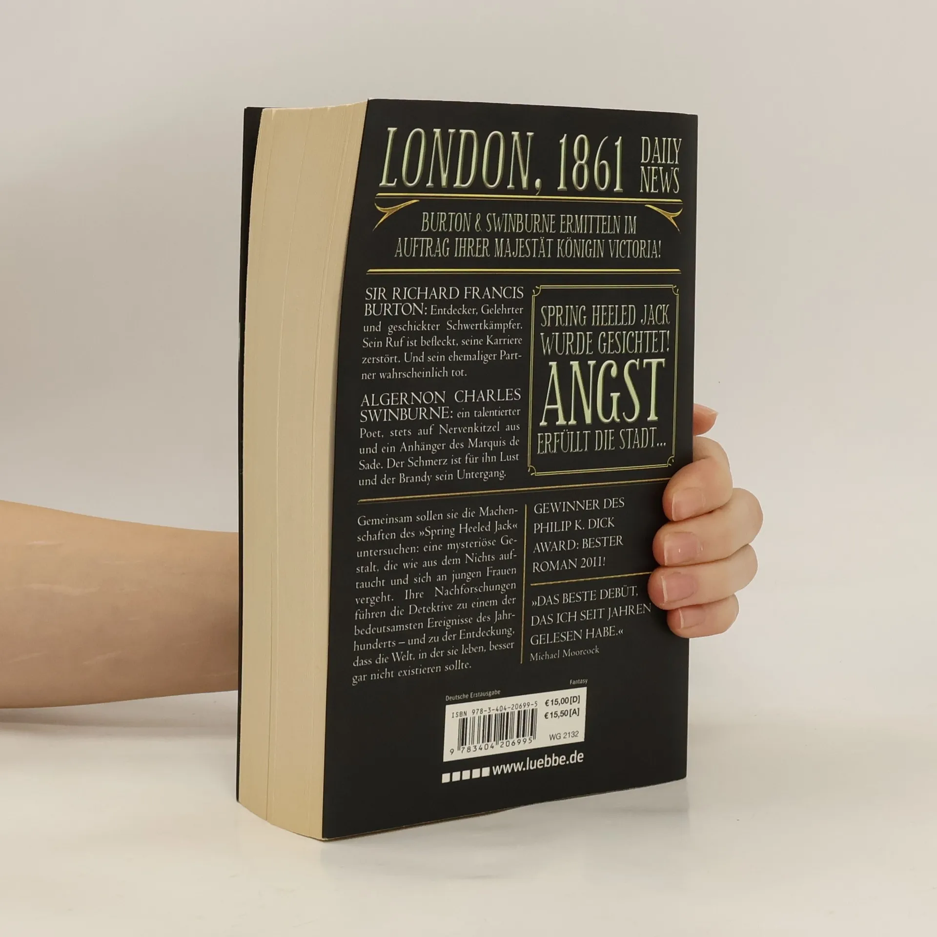 Sir Richard Francis Burton: Entdecker, Gelehrter und geschickter Schwertkämpfer. Sein Ruf ist befleckt, seine Karriere zerstört. Und sein ehemaliger Partner wahrscheinlich tot. Algernon Charles Swinburne: ein talentierter Poet, stets auf Nervenkitzel aus und ein Anhänger des Marquis de Sade. Der Schmerz ist für ihn Lust und der Brandy sein Untergang. Gemeinsam sollen sie die Machenschaften des „Springheeled Jack“ untersuchen: Eine mysteriöse Gestalt, die wie aus dem Nichts auftaucht und sich an jungen Frauen vergeht. Ihre Nachforschungen führen sie zu einem der bedeutsamsten Ereignisse des Jahrhunderts -und zu der Entdeckung, dass die Welt, in der sie leben, besser gar nicht existieren sollte.