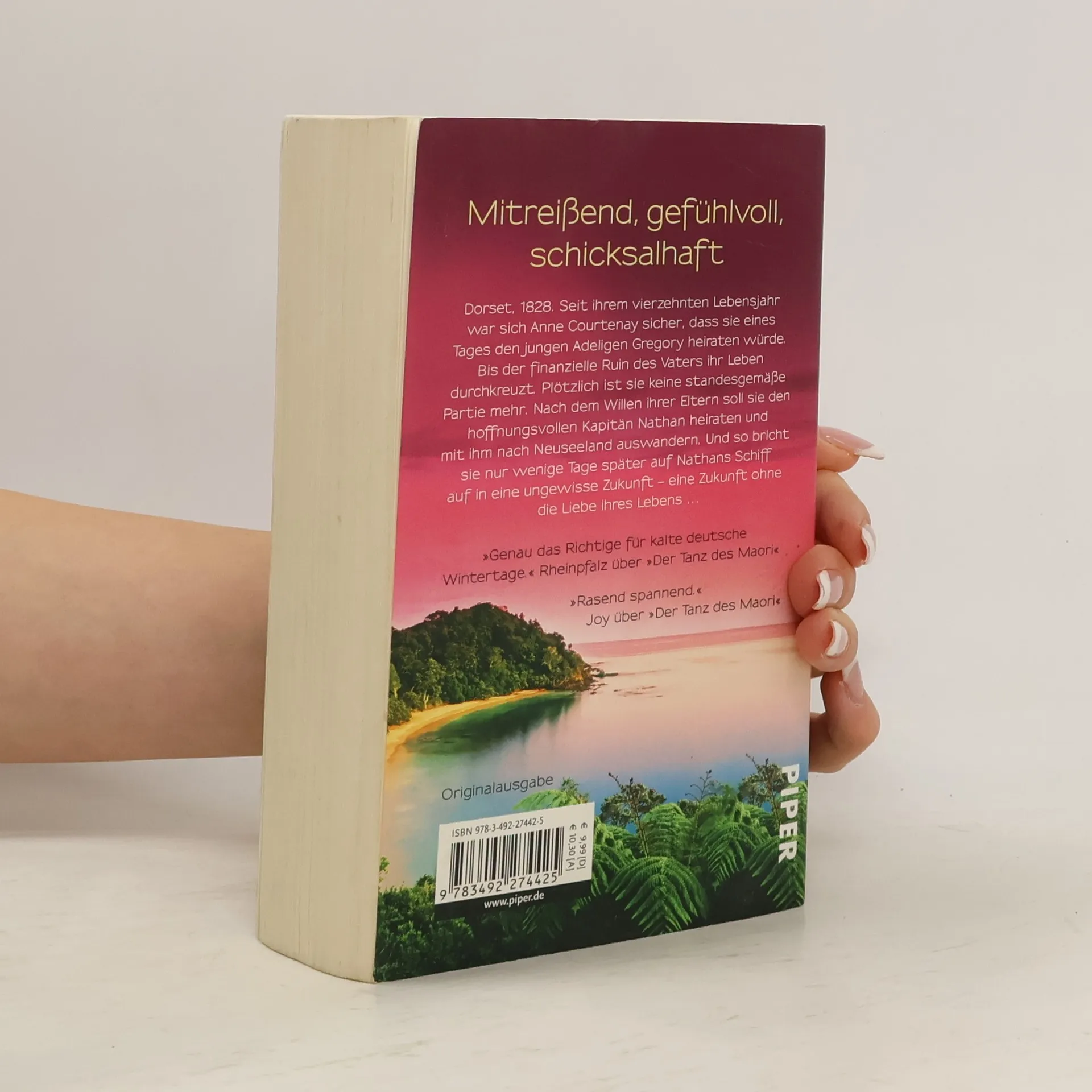 Dorset, 1828. Seit ihrem 14. Lebensjahr war sich Anne Courtenay sicher, dass sie eines Tages den jungen Adeligen Gregory heiraten würde. Bis der finanzielle Ruin des Vaters ihr Leben durchkreuzt. Plötzlich ist sie keine standesgemäße Partie mehr. Nach dem Willen ihrer Eltern soll sie den hoffnungsvollen Kapitän Nathan heiraten und mit ihm nach Neuseeland auswandern. Und so bricht sie nur wenige Tage später auf Nathans Schiff in eine ungewisse Zukunft auf – eine Zukunft ohne die Liebe ihres Lebens …