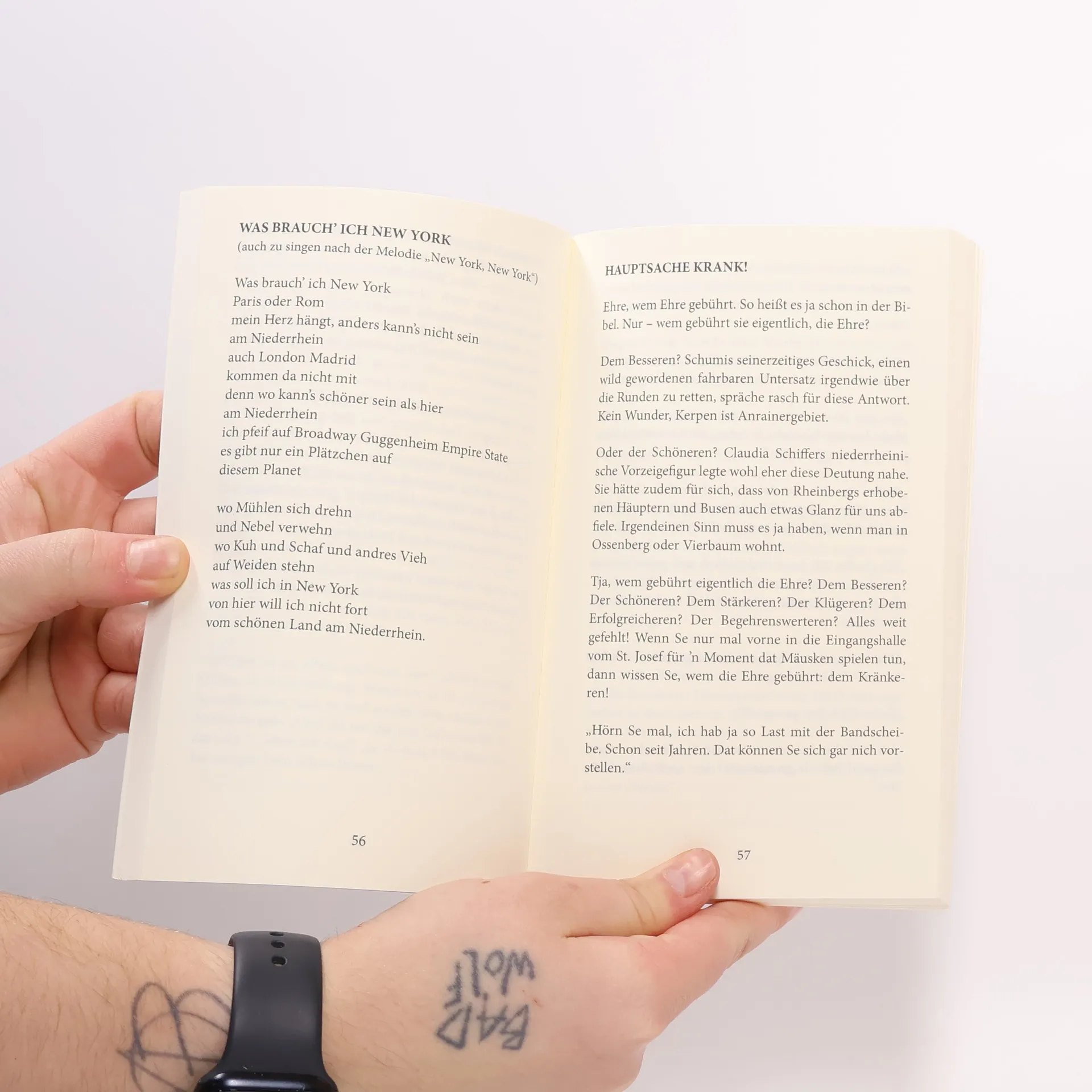 „Also: Ich weiß nicht, ob Ihnen das schon mal aufgefallen ist. Aber jeder Mensch liebt ja bekanntlich irgendwas. Tja, Beispiel, Beispiel, Beispiel. Wo soll ich jetzt so schnell ein Beispiel hernehmen? Also, sagen wir mal so: Der eine liebt seine Frau … gut, war jetzt ein bisschen weit hergeholt. Der andere liebt seine Bierhumpensammlung. Und Pastor Venneken sein akademisches Mittagsschläfchen. Und der Niederrheiner? Kann ich Ihnen sagen …“ In lockerem Wechsel von kurzen Prosatexten, Gedichten und Liedern verrät Okko Herlyn Erheiterndes und unbedingt Wissenswertes über den Niederrhein und Duisburg. Oft humoristisch, manchmal bissig und stets ein wenig nachdenklich, bietet der Autor sich als idealer Reisebegleiter an und führt den Leser sicher durch die interessante Landschaft der niederrheinischen Seele.