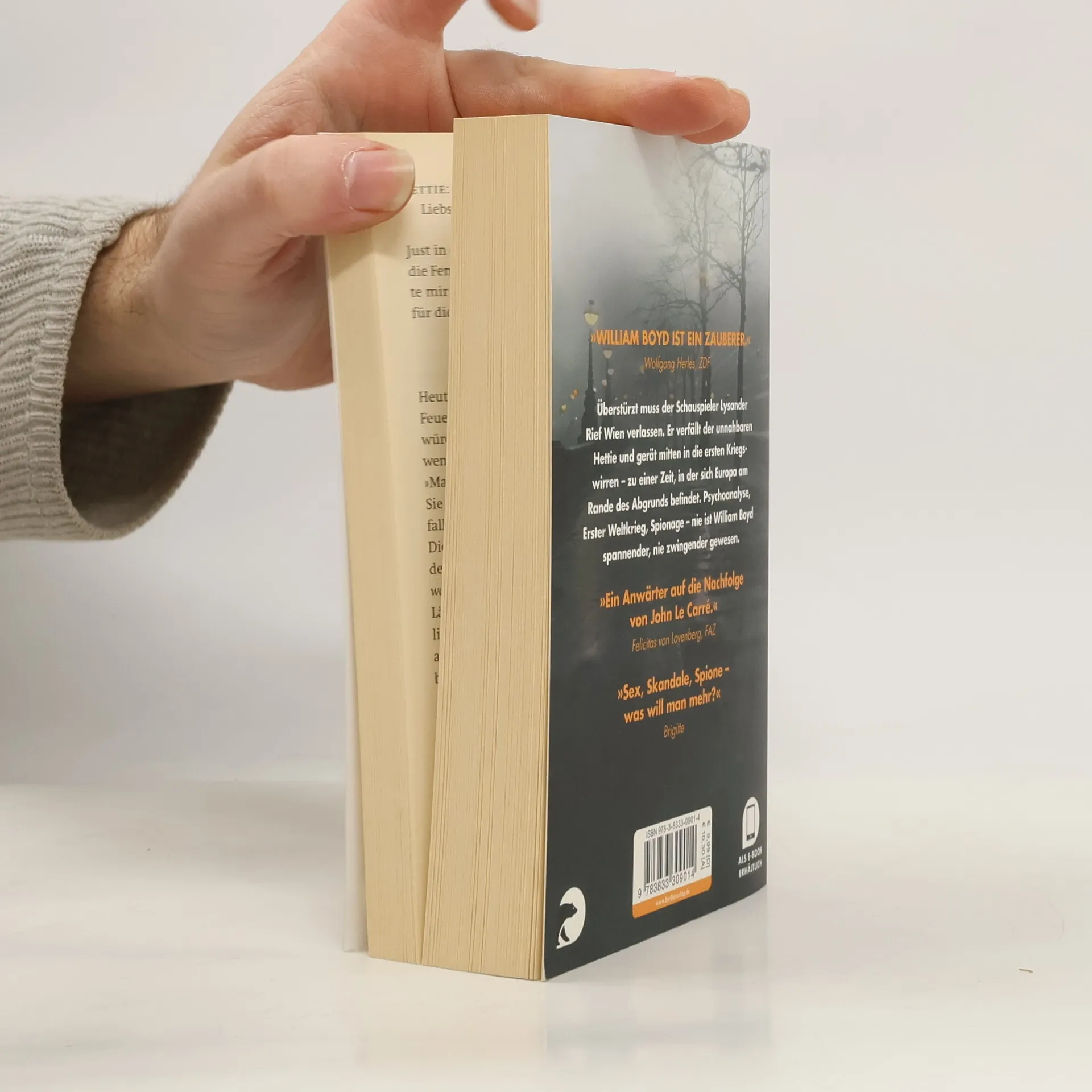 Wien, 1913. Lysander Rief, ein aufstrebender junger Schauspieler, hat alle Zelte in London abgebrochen und sich nicht zufällig in die Stadt Sigmund Freuds begeben. Vor seiner Hochzeit muss er sich einem delikaten Problem stellen. Doch als er im Wartezimmer von Dr. Bensimon Hettie begegnet, weiß er sofort, diese unergründlichen braungrünen Augen werden ihn nicht mehr loslassen. Hettie Bull öffnet ihm alle Türen zum ausschweifenden Wiener Künstlerleben, sie betört, umgarnt und blendet ihn und drängt ihn in ein undurchschaubares Spiel, das ihn zur Flucht aus Wien und in die Arme zweier britischer Agenten treibt. Boyds neuer Roman ist eine Erkundung der Tiefen menschlicher Psyche und ein Spionageroman zugleich. Mit meisterlicher Hand entwirft Boyd einen Kosmos, der die Unruhe und Rastlosigkeit einer Epoche zeigt, den schmalen Grat zwischen Brillanz und Scheitern. Eine große Zeit ist aber nicht allein ein Parforceritt durch Europa und die Wirren des Ersten Weltkriegs, es ist ein großer wahrhaftiger Roman, den der Autor uns zu seinem 60. Geburtstag schenkt.