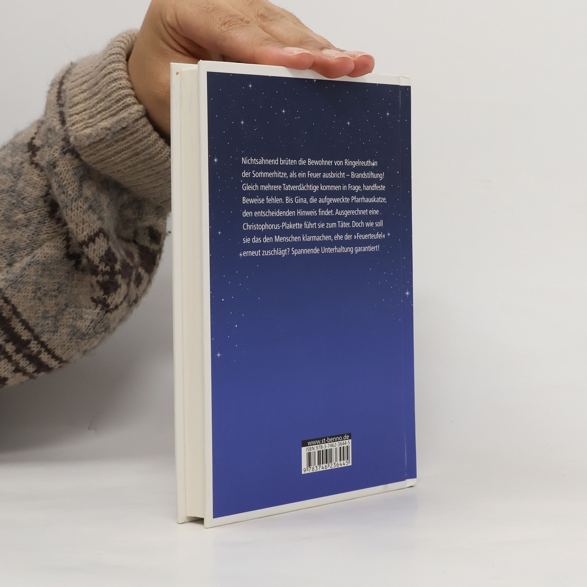 Nichtsahnend brüten die Bewohner von Ringelreuth in der Sommerhitze, als ein Großbrand ausbricht – Brandstiftung! Gleich mehrere Tatverdächtige kommen in Frage, handfeste Beweise fehlen. Bis Gina, die aufgeweckte Pfarrhauskatze, den entscheidenden Hinweis findet. Ausgerechnet eine Christophorus-Plakette führt sie zum Täter. Doch wie soll sie das den Menschen klarmachen, ehe der 'Feuerteufel' erneut zuschlägt? Spannende Unterhaltung garantiert!