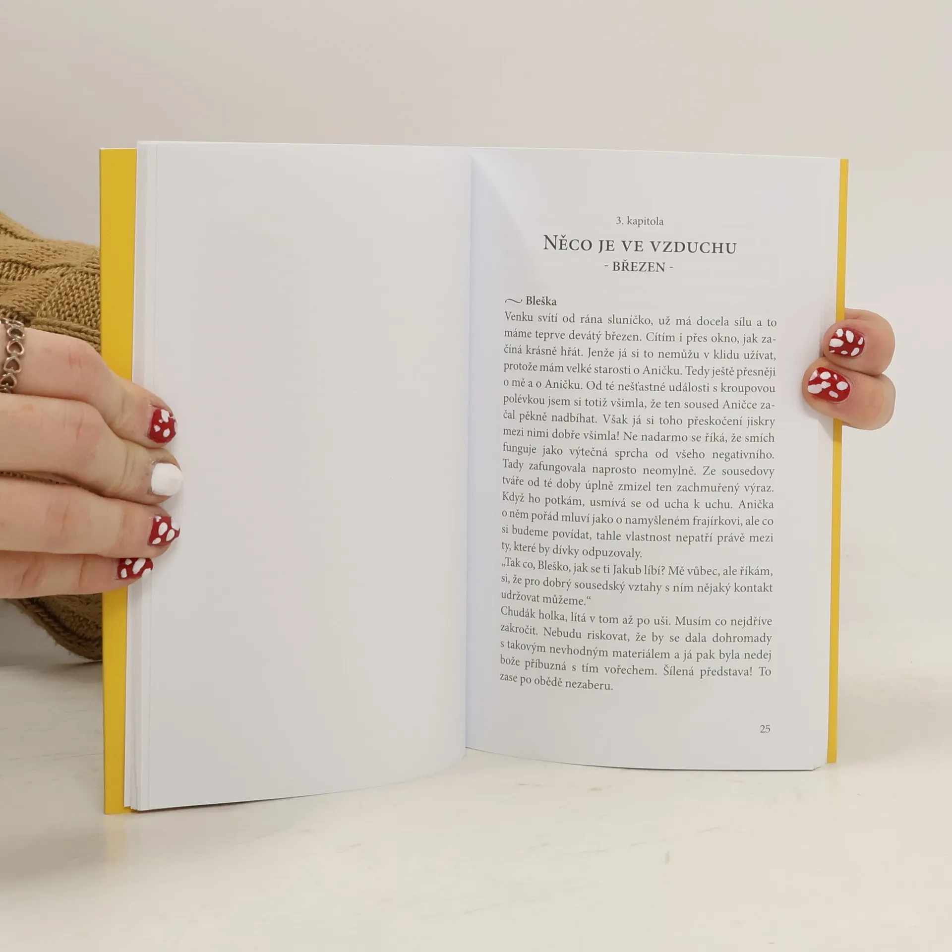 Bleška je britská modrá kočka s vybranými mravy, kterou její nóbl panička kvůli drobné vadě nemilosrdně odloží. To, co se v první chvíli jeví jako tragédie, „Po týdnu toulání jsem zmrzlá, špinavá a vyčerpaná dorazila k domku, ze kterého vyzařovalo zvláštní teplo. Něco mě k němu nevysvětlitelně táhlo. A ano, přiznávám kromě toho zvláštního tepla mohlo hrát roli i to, že u vchodových dveří ležela miska s čerstvým jídlem.“ se ale brzy promění v životní štěstí. Rozčepýřený vořech Walda se narodil v naprosté chudobě. Jen díky velké náhodě unikl smrti a co víc, dalším zásahem osudu se mu povedlo najít milujícího páníčka. „Ano, uznávám, jsem trošku rozčepejřenej a moje srst má spíš hrubší základ, ale kdyby mi někdo zastřihnul fousy a zkrátil trochu tu deku na zádech, mohl bych to podle mě v šeru a z dálky uhrát úplně v klidu na knírače.“ Tato naprosto odlišná dvojka se potkává ve společném domě, kde se z nich stanou nejdříve sousedé „Projelo mi hlavou, co všechno jsem tomu vořechovi v posledních týdnech provedla a bylo mi jasné, že moje dny jsou sečteny. Zakousne mě! Ukousne mi hlavu! V lepším případě nohu!“ a později i spolubydlící. „Ta kočka se snad rozhodla, že mě psychicky zničí. A to je teprve půlka března, jak budu asi vypadat v létě? „ Příběh plný lásky, smíchu, ale i nervů právě začíná.