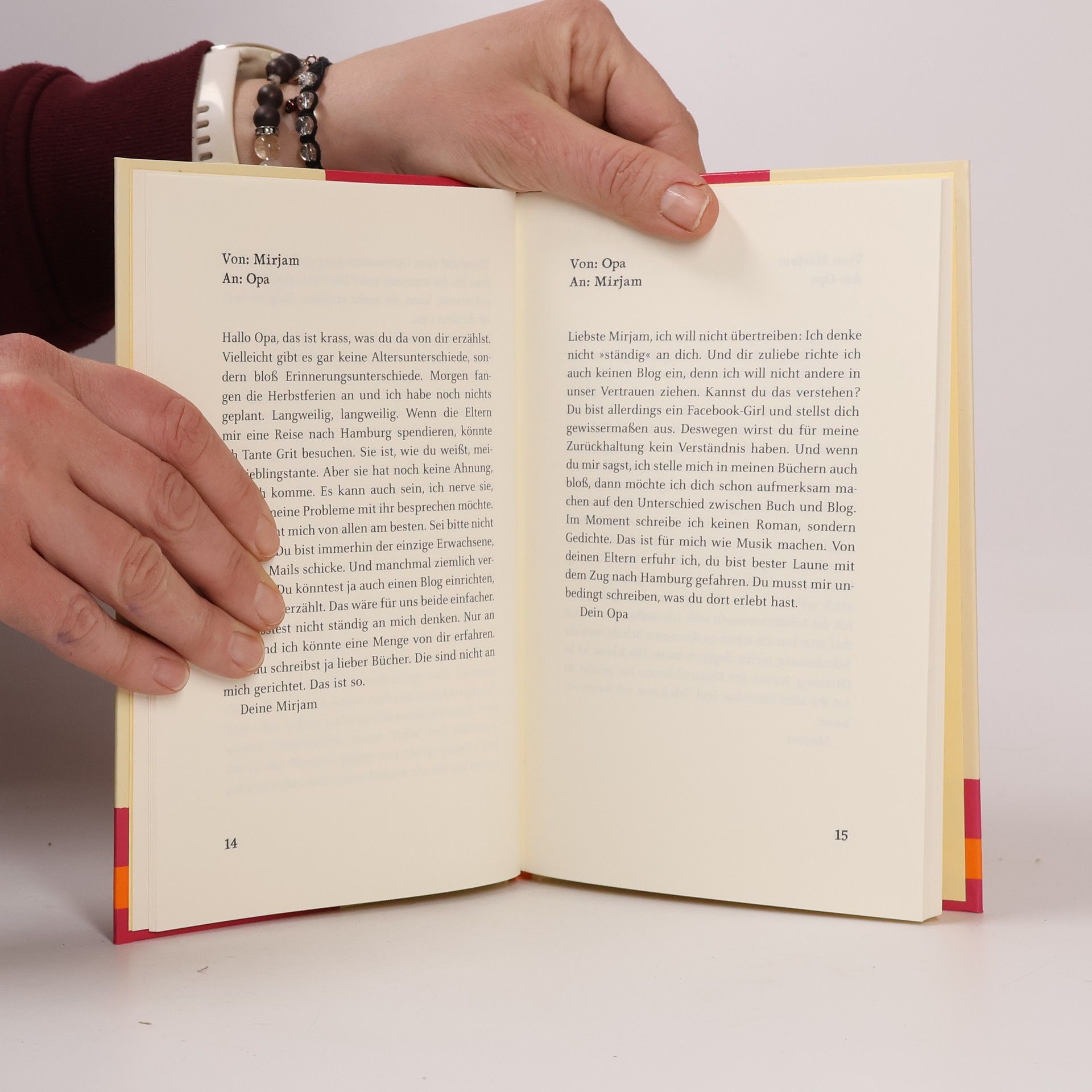 Eine Geschichte in E-Mails - zwischen Mirjam und ihrem etwas weisen Opa. Eine innige Geschichte von großer Nähe und Zugewandtheit: Im unvergleichlichen Härtling-Ton erzählt er leicht und klar von einer Freundschaft zwischen Großvater und Enkelin, die mit dem Tod nicht einfach aufhört. Mirjam ist 14 und berichtet ihrem beinahe 80-jährigen Opa von falschen (Facebook-) Freunden, dem Schulwechsel, der deswegen sein muss, und ermahnt ihn, sich nicht in ihre Angelegenheiten zu mischen. Der Opa antwortet - manchmal nicht sofort -, wie schwierig das mit dem Erinnern ist und erzählt, wie es für ihn damals, nach dem Krieg, war, die richtigen Freunde zu finden. Er gibt ihr Ratschläge, wie man mit Ängsten und mit Eltern umgeht, und versichert ihr, das Gästebett sei immer für sie gemacht. Mirjam erfährt von ihm, wie es ist, wenn man nicht mehr sicher auf den Beinen ist, und das Gefühl hat, alles sei vielleicht ein letztes Mal. Eines Tages antwortet Opa Mirjam nicht mehr ...