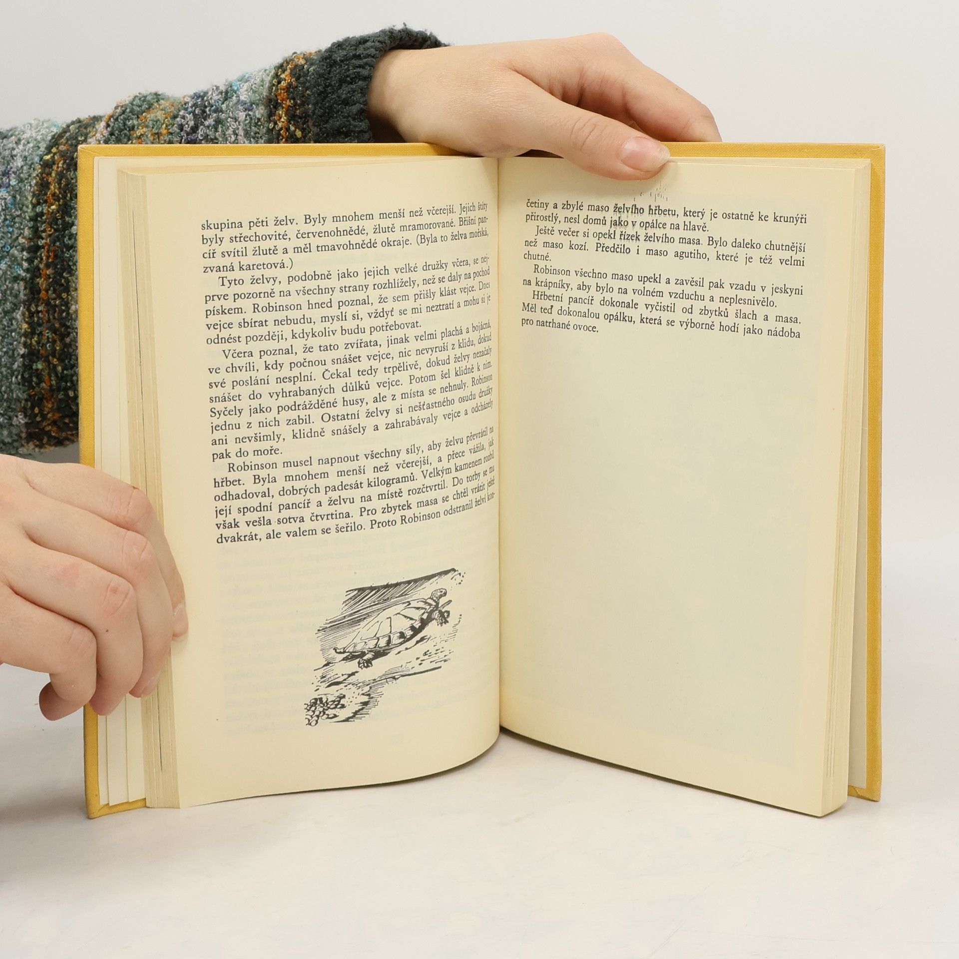 Dobrodružný román o osudech trosečníka bojujícího o přežití na pustém ostrově, určený především starším dětem. Podle románu D. Defoe vypráví autor příběh odehrávající se v druhé polovně 17. století. Robinson se proti vůli svých rodičů vydává na moře na palubě trojstěžňového kupeckého korábu. Ten je přepaden piráty a Robinson se, s částí posádky, dostává do zajetí. Po dobrodružství na lodi kapitána pirátů je zachráněn španělskou kupeckou lodí. Po strašné bouři však tato loď ztroskotá. Robinson se ocitá na pevnině, pustém ostrově. Tady začíná zápas Robinsona o přežití: shání potravu, zařizuje si jeskyni, sestrojí sluneční hodiny a zřizuje si kalendář. Snaží se rozdělat oheň, vyrábí si oblek, začíná pěstovat zvířata. Do jeho života na ostrově zasahuje i příchod lidožroutů, nachází svého přítele Pátka.