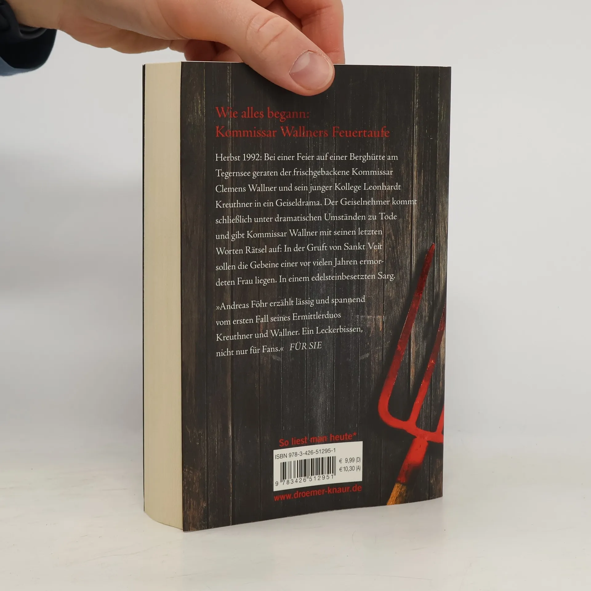 Im fünften Band der Krimi-Reihe von Bestseller-Autor Andreas Föhr kehren die beliebten Ermittler Wallner und Kreuthner aus Bayern zu ihren Anfängen zurück und erzählen parallel ein spannendes Kriegsdrama, das in der Zeit der NS-Verbrecher am Tegernsee spielt. Der frischgebackene Kommissar Clemens Wallner und sein Kollege Leonhardt Kreuthner geraten bei einer Feier im Herbst 1992 in ein Geiseldrama. Als der Geiselnehmer stirbt, gibt er mit seinen letzten Worten Hinweise auf die Gebeine einer vor vielen Jahren ermordeten Frau, die in der Gruft von Sankt Veit in Dürnbach liegen sollen. Fragen über ihren Tod kurz vor Kriegsende und das aufwendige Grab führen die Ermittler auf eine spannende Spur. Dabei decken sie nicht nur ein ungesühntes Kriegsdrama auf, sondern auch persönliche Geheimnisse: Wallners ständige Kälte und Kreuthners Leben mit seinem Großvater. Dieser Krimi ist äußerst wendungsreich und bietet ein überraschendes Ende, während er gleichzeitig ein Stück Regionalgeschichte vom Tegernsee beleuchtet. Die Geschichten um das Ermittlerduo sind verständlich, gut lesbar und stets spannend, was sie zur perfekten Krimilektüre macht.