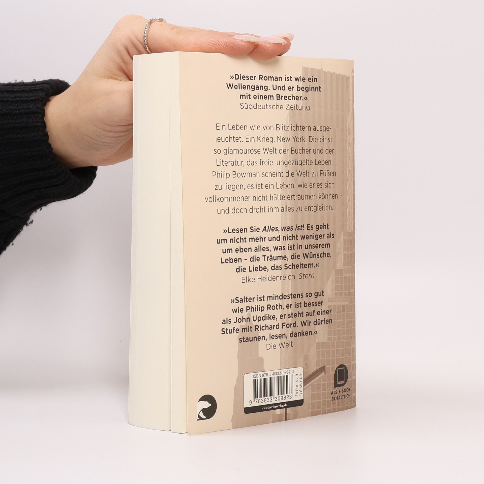 Als Lieutenant Philip Bowman aus dem Pazifischen Krieg zurückkehrt, der Schlacht von Okinawa knapp entronnen, liegt das Leben endlich vor ihm. Er studiert, heuert bei einer Theaterzeitschrift an, beginnt für einen Verlag Manuskripte zu lesen. Alles scheint möglich in dem noch ungebändigten New York. Er wird Lektor in einem angesehenen Verlag, diniert mit Schriftstellern, und er lernt Vivian kennen, Vivian Amussen, das schöne unnahbare Mädchen aus dem Süden. Ein Leben, wie er es sich vollkommener nicht hätte erträumen können - und doch droht ihm alles zu entgleiten. James Salter hat einen Roman über die Verlockungen und Verheißungen New Yorks geschrieben, der ewig verführerischen Stadt, über Versuchung und Täuschung. Auftaktseite: »Salter ist mindestens so gut wie Philip Roth, er ist besser als John Updike, er steht auf einer Stufe mit Richard Ford. Wir dürfen staunen, lesen, danken.« Die Welt »Lesen Sie James Salter: „Alles, was ist“! Es geht um nicht mehr und nicht weniger als um eben alles, was ist in unserem Leben - die Träume, die Wünsche, die Liebe, das Scheitern, letztlich: wie man sich irgendwie durchwurschtelt [...]. Salter ist nicht Shakespeare, aber er ist ein weiser alter Mann, der mit diesem Buch noch einmal seine Stimme erhebt und sagt: Dieses Leben ist alles, was ist. Macht was draus.« Elke Heidenreich, Stern »Die Art, wie der mittlerweile 88-Jährige das Leben des Kriegsveteranen und Lektors Philip Bowman als Gesellschaftsbild aufblättert, wie Nebenfiguren und ihre Geschichten in Textnischen aufblühen und vergehen, ist faszinierendes Erzählkino.« Christian Jooß, AZ München