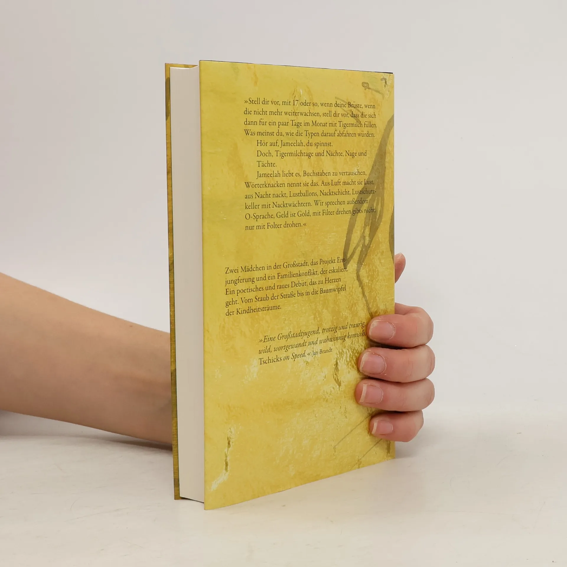 »Manchmal kann die Musik gar nicht laut genug sein, damit man das Leben nicht hört.« Nini und Jameelah, unzertrennlich und mit vierzehn Jahren überzeugt, erwachsen zu sein, ziehen ihre Ringelstrümpfe bis zu den Oberschenkeln, um cool zu wirken. Sie mischen auf der Schultoilette Milch, Mariacron und Maracujasaft zu ihrer selbst kreierten Tigermilch und genießen den Sommer, der ihr letzter gemeinsamer sein könnte. Ihre Erlebnisse umfassen Bahnpartys, das Rauchen in Telefonzellen und Ausflüge ins Schwimmbad mit Amir, den sie wie einen kleinen Bruder beschützen. Amirs großer Bruder Tarik ist im Dauerstreit mit seiner Schwester, die sich in einen Serben verliebt hat. Nini und Jameelah schaffen sich eine eigene Welt voller Glamour und Intimität, die für sie wie Familie ist. Sie fühlen sich unverwundbar, solange sie zusammen sind. Doch als sie Zeugen eines eskalierenden Konflikts in Amirs Familie werden, droht alles zu zerbrechen. Stefanie de Velasco erzählt mit einem einzigartigen Sound von zwei Mädchen, die das Leben ergreifen und lernen müssen, mit Verlust und Sehnsucht umzugehen. Ein kraftvolles Debüt, das unmittelbar, entlarvend und herzzerreißend ist.