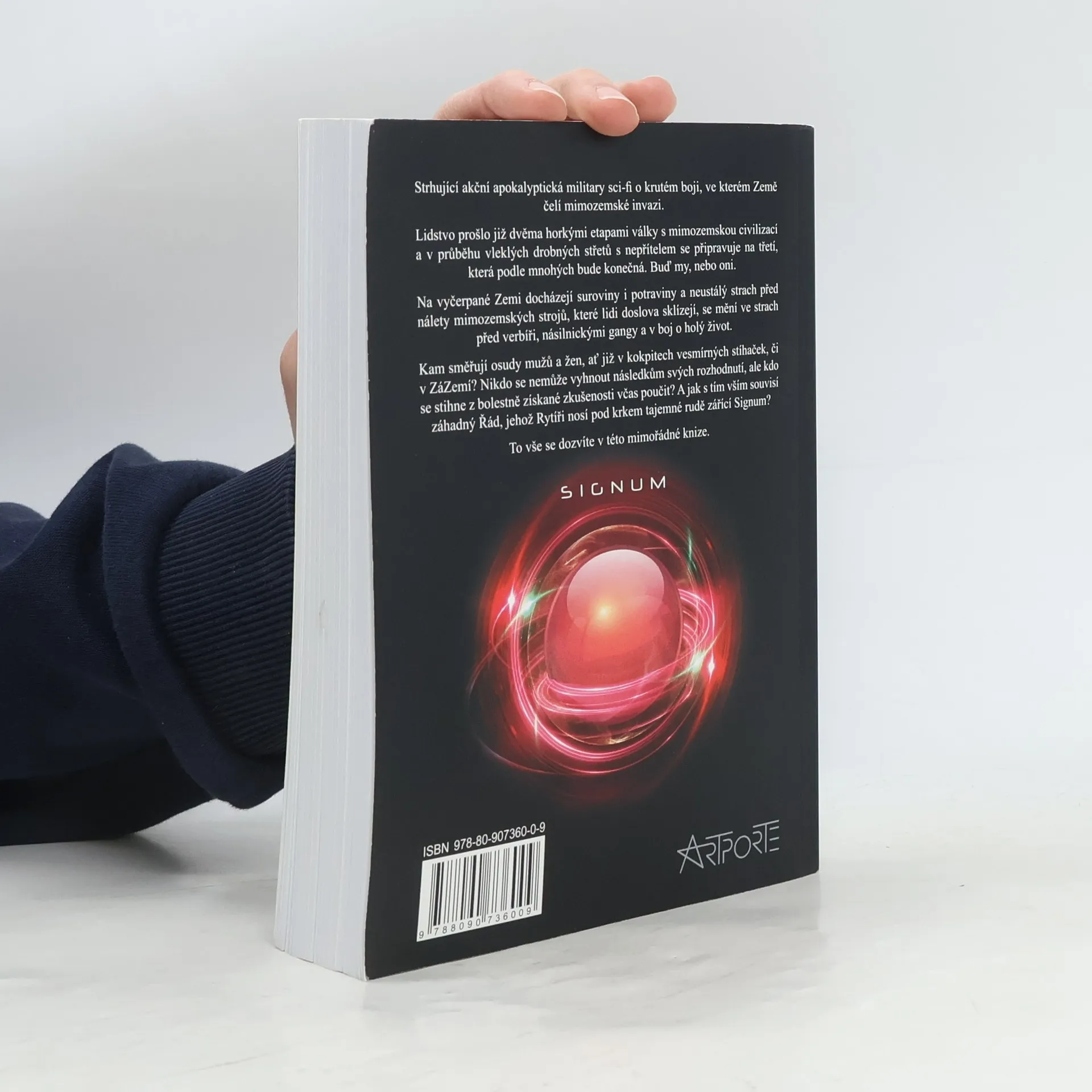 Strhující akční apokalyptická military sci-fi o krutém boji, ve kterém Země čelí mimozemské invazi. Lidstvo prošlo již dvěma horkými etapami války s mimozemskou civilizací a v průběhu vleklých drobných střetů s nepřítelem se připravuje na třetí, která podle mnohých bude konečná. Buď my, nebo oni. Na vyčerpané Zemi docházejí suroviny i potraviny a neustálý strach před nálety mimozemských strojů, které lidi doslova sklízejí, se mění ve strach před verbíři, násilnickými gangy a v boj o holý život. Kam směřují osudy mužů a žen, ať již v kokpitech vesmírných stíhaček, či v ZáZemí? Nikdo se nemůže vyhnout následkům svých rozhodnutí, ale kdo se stihne z bolestně získané zkušenosti včas poučit? A jak s tím vším souvisí záhadný Řád, jehož Rytíři nosí pod krkem tajemné rudě zářící Signum? To vše se dozvíte v této mimořádné knize.