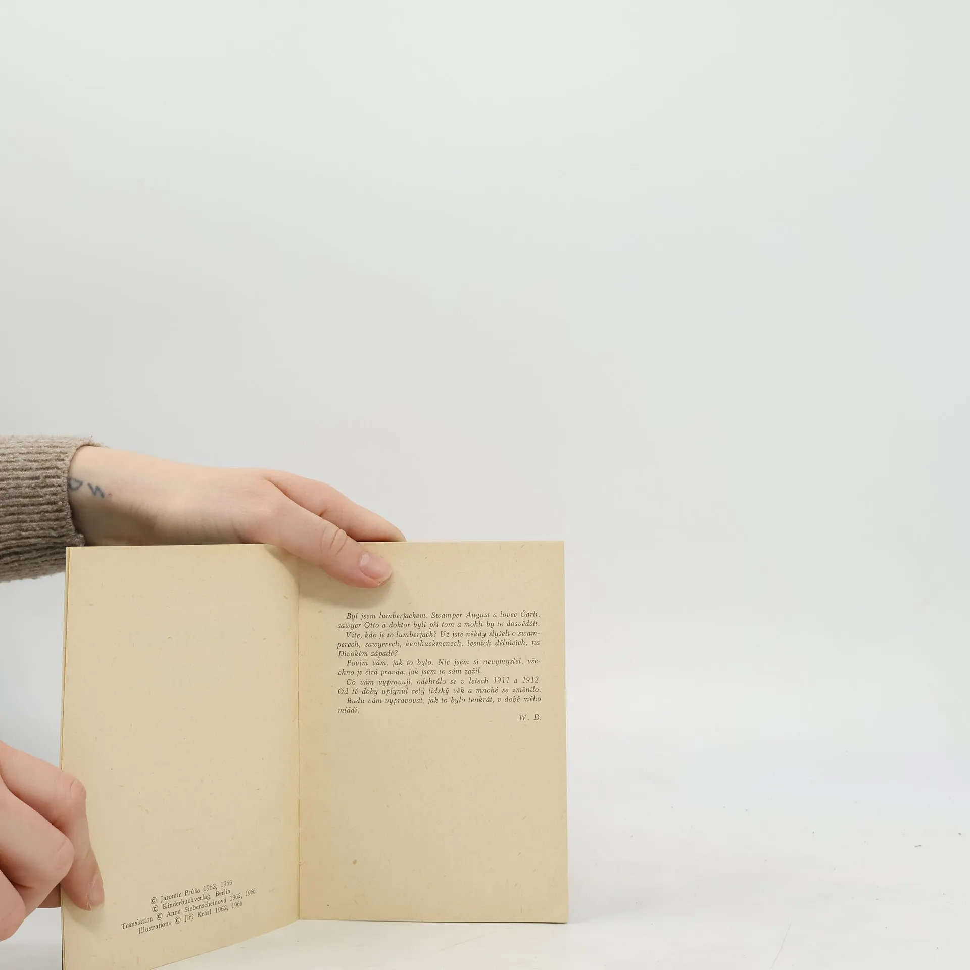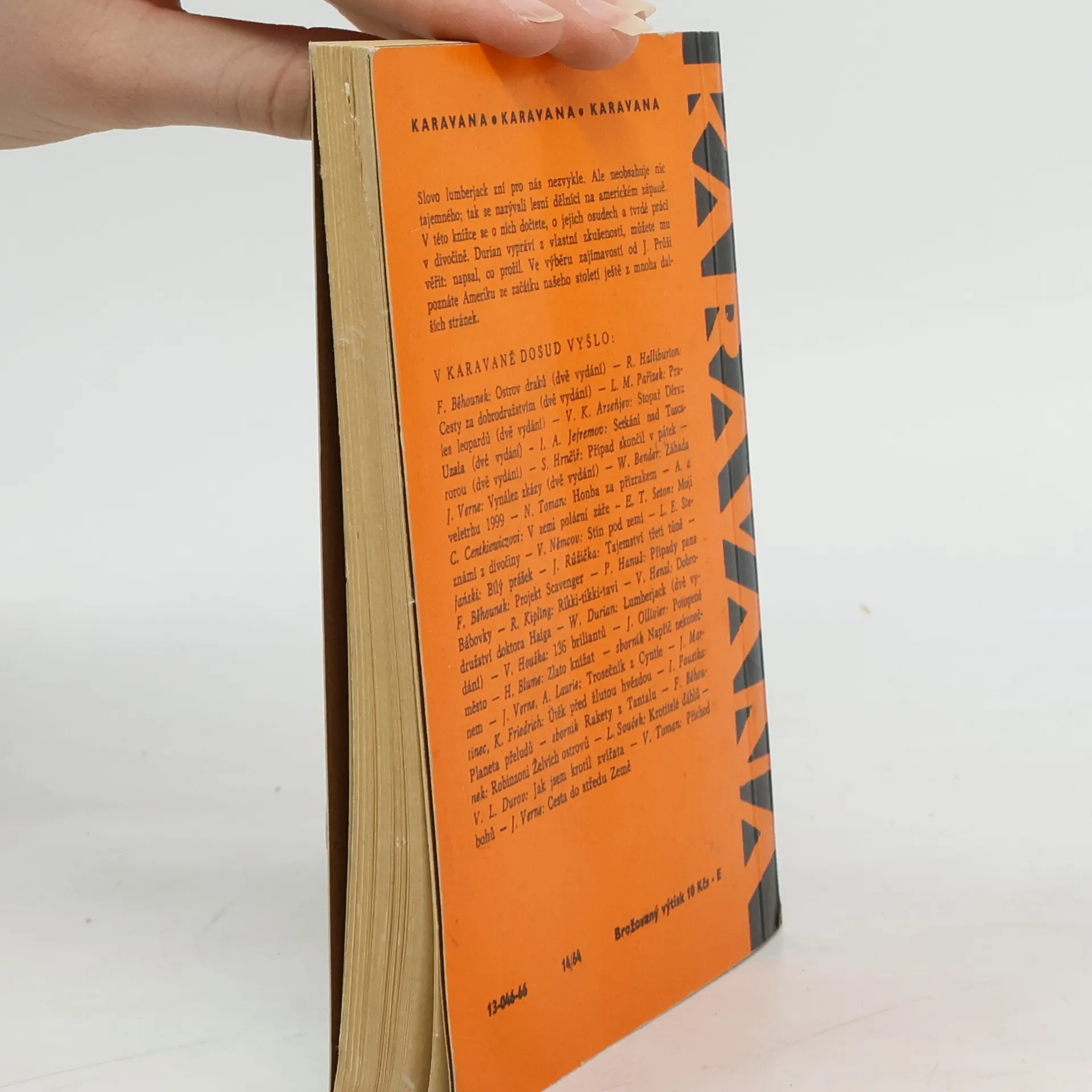 Wolf Durian: Lumberjack. Dobrodružství v severoamerických lesích. Edice: Karavana knihy (1958-1968), strana 7 - 120. Jaromír Průša: Výběr zajímavostí. Například kapitoly: První Čech v Americe, Kde se vzali v Americe černoši, Zkáza Titaniku, Zlatá horečka, Edisonův kinetoskop, Král prérie,Rezervace, Socha Svobody, aj. Strana 121 - 158. "Byl jsem lumberjackem. Swamper August a lovec Čarli, sawyer Otto a doktor byli při tom a mohli by to dosvědčit. Víte, kdo je to lumberjack? Už jste někdy slyšeli o swamperech, sawyerech, kenthuckmenech, lesních dělnících, na Divokém západě? Povím vám, jak to bylo. Nic jsem si nevymyslel, všechno je čirá pravda, jak jsem to sám zažil. Co vám vypravuji, odehrálo se v letech 1911 a 1912. Od té doby uplynul celý lidský věk a mnohé se změnilo. Budu vám vypravovat, jak to bylo tenkrát, v době mého mládí. W. D. (Wolf Durian)" ... (strana 5, anotace - předmluva autora, 2. vydání, rok 1966)
