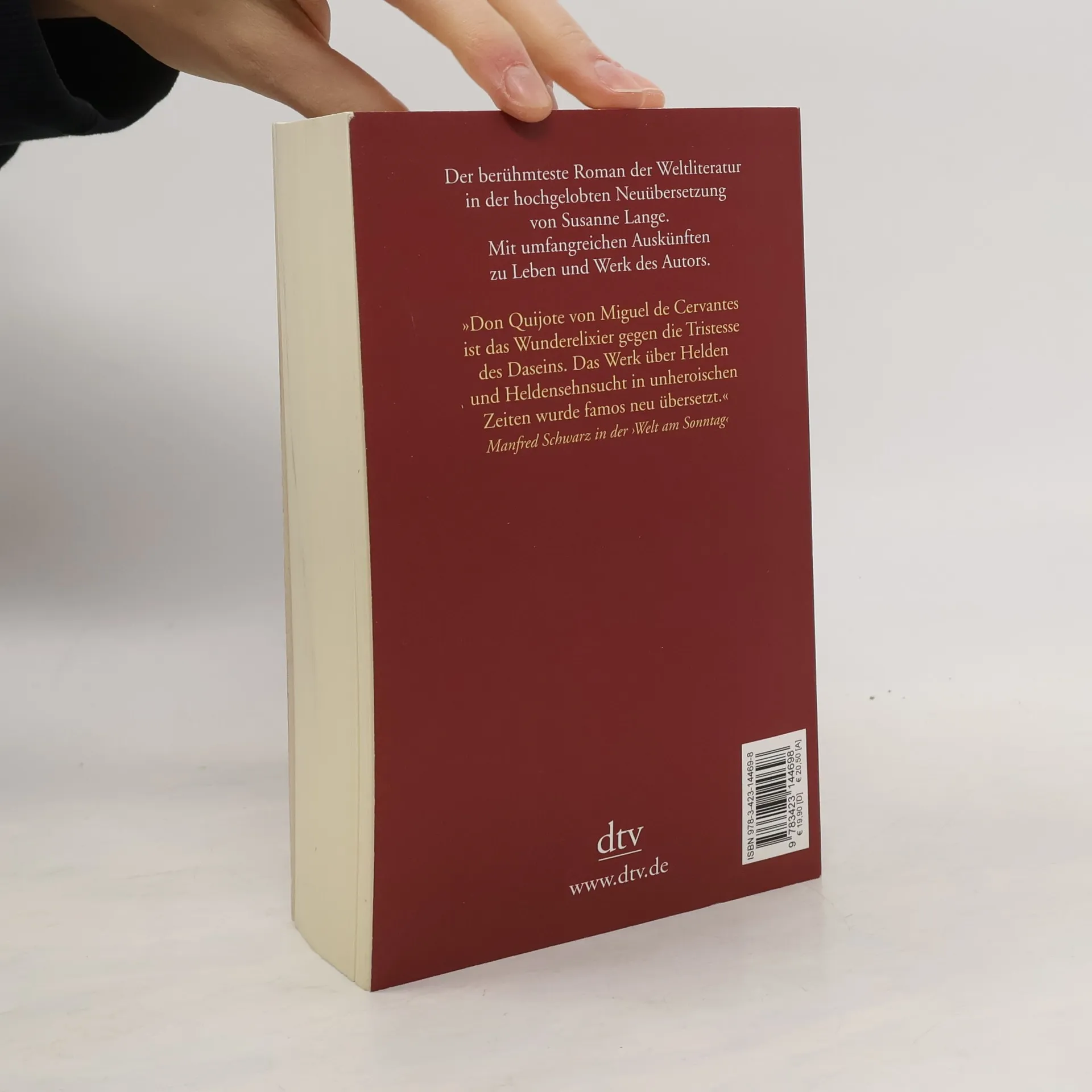 Zum 400. Todestag von Cervantes Der berühmteste Roman der Weltliteratur: Die Abenteuer des Möchtegern-Ritters Don Quijote von der Mancha erschienen 1605 und 1615 in zwei Teilen. Cervantes begründete damit nicht nur die neue Gattung ›Roman‹, sondern setzte seinem Helden und dessen Knappen Sancho Panza wie sich selbst ein Denkmal für die Ewigkeit. Susanne Langes Neuübersetzung des Mammutwerks wurde von Kennern wegen ihrer unvergleichlichen Nähe zum Original als kongenial gefeiert. Mit umfangreichem Anhang zu Zeitgeschichte, Leben und Werk des Autors.