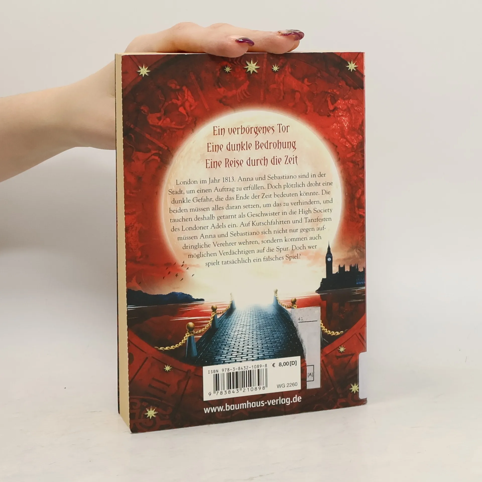 Anna und Sebastiano sollten eigentlich nur einen Ingenieur nach London in das Jahr 1813 begleiten. Doch dort angekommen, erwartet sie eine weitaus gefährlichere Mission: Jemand versucht, sämtliche Zeitreise-Tore zu zerstören, und nur Anna und Sebastiano können es verhindern. Getarnt als Geschwister tauchen sie in die High Society des Londoner Adels ein. Auf Kutschfahrten und Tanzfesten müssen sie sich nicht nur gegen aufdringliche Verehrer wehren, sondern kommen auch möglichen Verdächtigen auf die Spur. Doch wer spielt tatsächlich ein falsches Spiel?