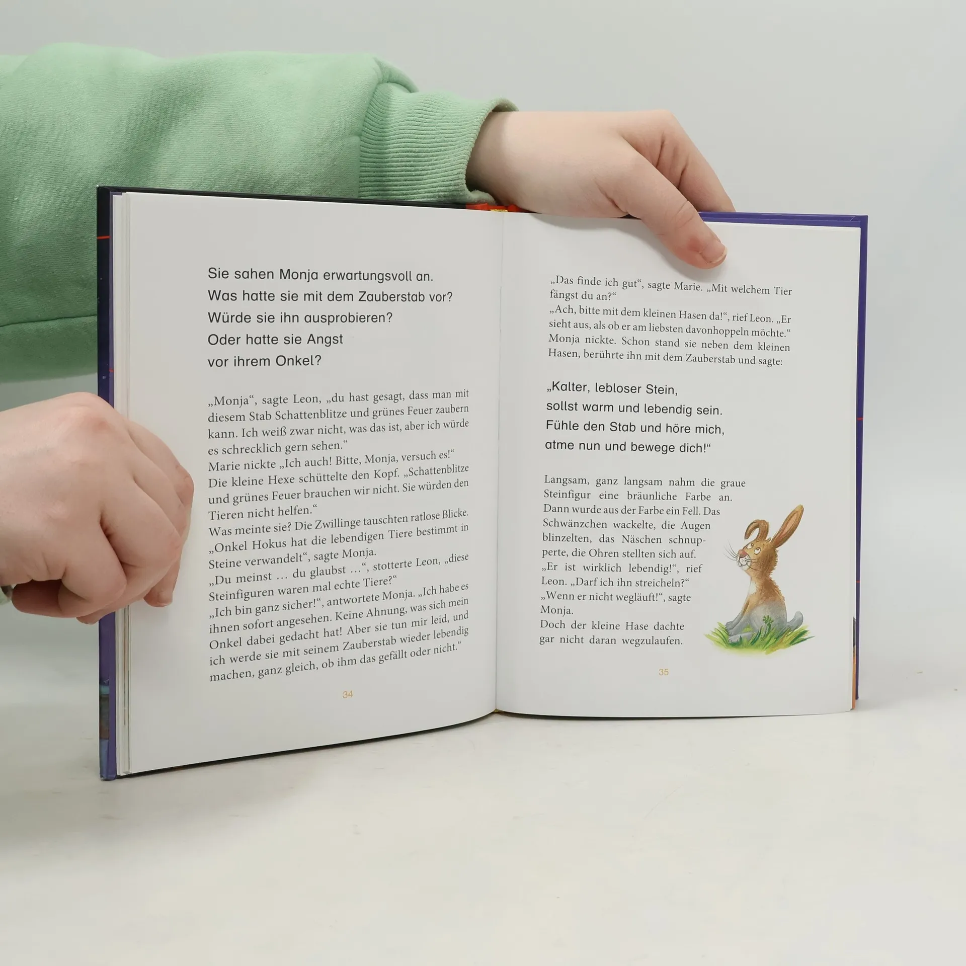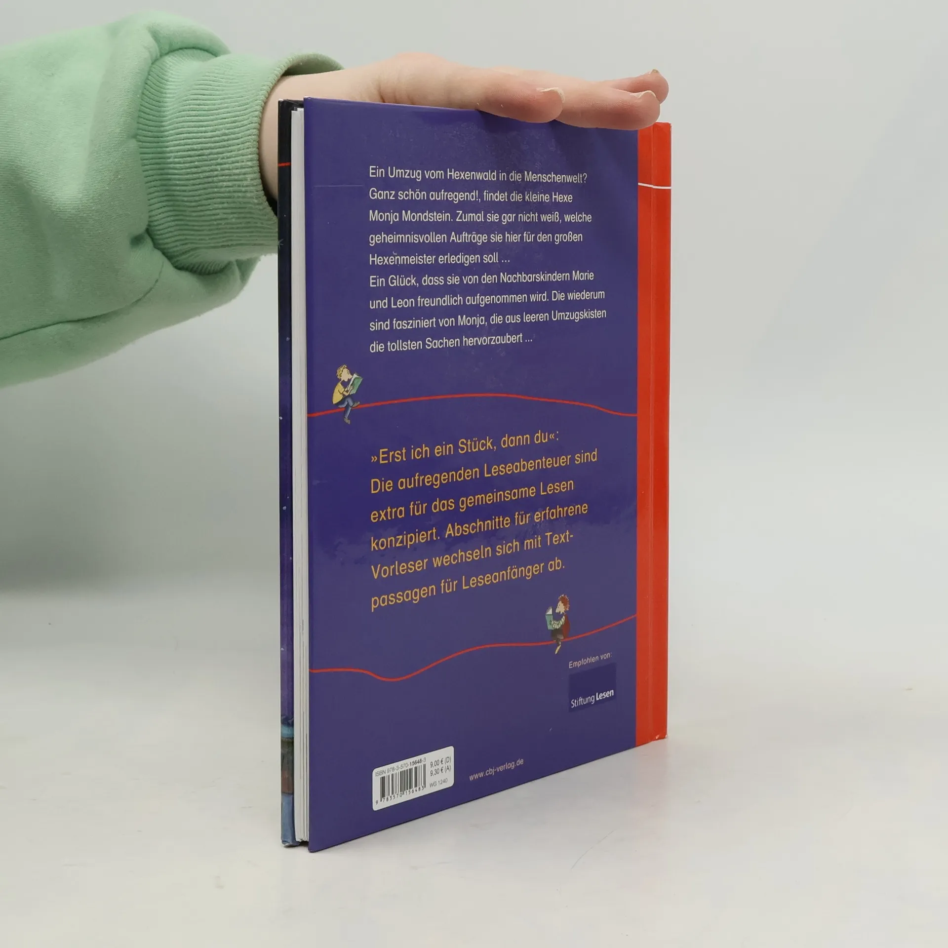 Die erfolgreiche Kinderbuchreihe mit bewährtem Konzept für das gemeinsame Lesenlernen und –üben Bisher kannte Hexe Monja Mondstein nur den Hexenwald. Deswegen ist sie ganz schön aufgeregt, als sie allein in das leerstehende Haus ihres Onkels, eines berüchtigten Hexenmeisters, ziehen und geheimnisvolle Aufträge für ihn erledigen soll. Das Haus liegt in der Menschwelt. Und deswegen freut sich Monja, dass sie von den Kindern Marie und Leon freundlich aufgenommen wird. Die sind wiederum fasziniert von Monja Mondstein, die aus leeren Umzugskisten die tollsten Sachen hervorzaubert und merkwürdige Haustiere besitzt ... Wenn das Lesen für Leseanfänger noch mühsam ist, heißt es in vielen Familien: »Lass uns gemeinsam lesen. Erst ich ein Stück, dann du. Wir wechseln uns ab.« Deswegen ist unsere beliebte Erstleser-Reihe »Erst ich ein Stück, dann du« speziell für das gemeinsame Lesen konzipiert: * Leseabschnitte für die erfahrenen Vorleser und die Leseanfänger wechseln sich ab * längere Passagen für Vorleser in kleiner Schrift * kurze Texte für Leseanfänger in Fibelschrift So macht gemeinsames Leselernen Spaß! Ausstattung: Mit fbg. Illustrationen