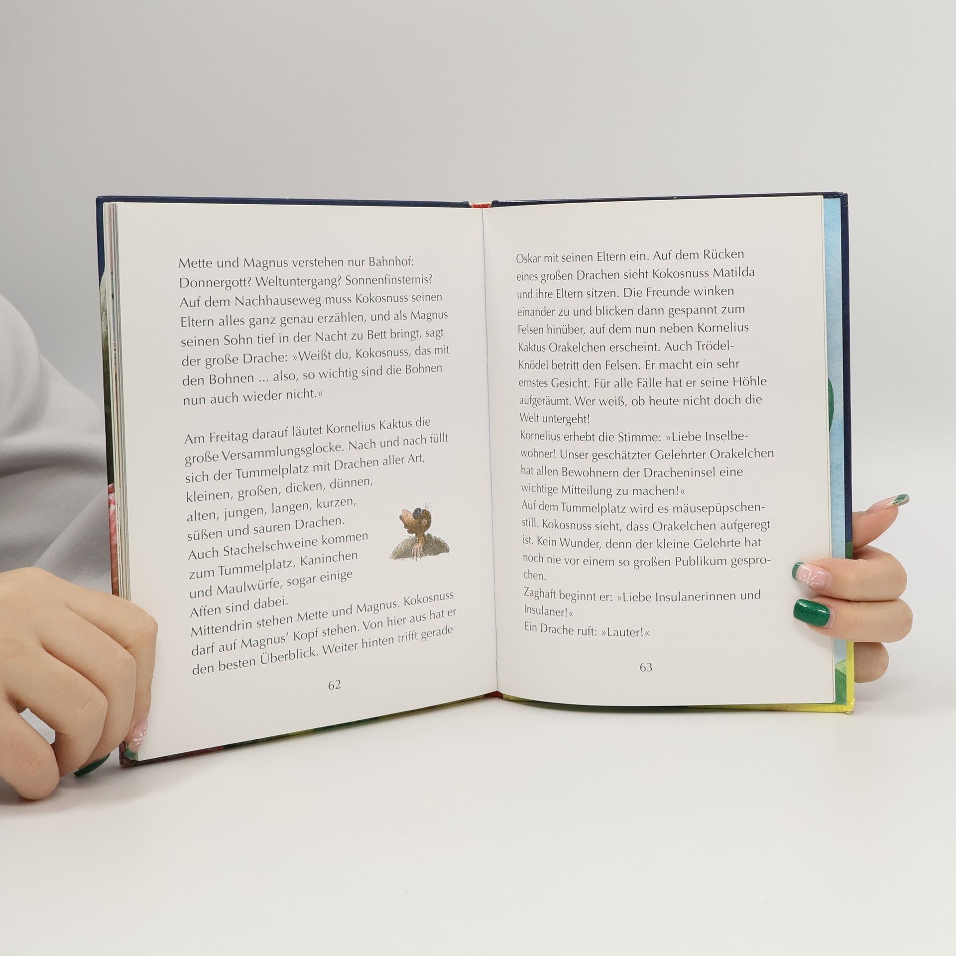 Der kleine Drache Kokosnuss löst dasTempel-Geheimnis. Der kleine Drache Kokosnuss, Matilda und Oskar sind erschüttert: Für die nächste Woche wird der Weltuntergang vorausgesagt! Klar, dass die drei Freunde nicht tatenlos zusehen, bis es soweit ist. Sie wollen herausfinden, was es mit dieser Prophezeiung auf sich hat. Orakelchen, der Zukunftsexperte der Dracheninsel, meint, die Antwort könnte im verbotenen Tempel in den Himmelskratzer-Bergen zu finden sein. Die Freunde begeben sich auf eine gefährliche Reise ... Die Geschichten über die aufregenden Abenteuer, die der kleine Drache Kokosnuss mit seinen Freunden erlebt, sind inzwischen wahre Kinderbuchklassiker. Ingo Siegner schreibt über Freundschaft und Mut und fügt liebenswert-originelle Illustrationen hinzu. Die »Dein-Spiegel-Bestseller«-Reihe eignet sich perfekt zum Vor- und Selberlesen. Ausstattung: Mit fbg. Illustrationen