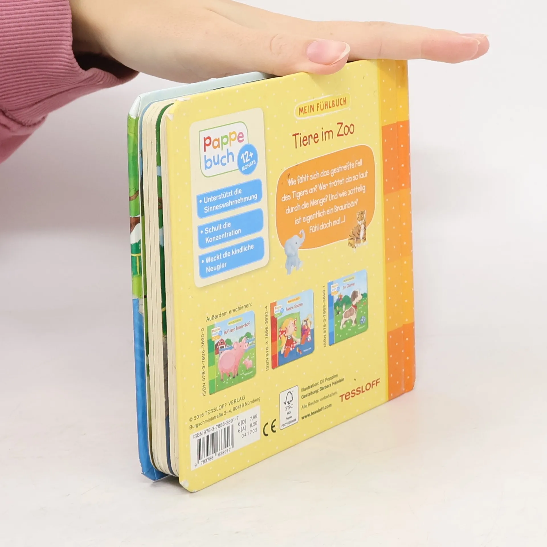 Das farbenfrohe Fühlbuch aus stabiler Pappe lädt Kinder ab 12 Monaten ein, erste Tiere kennenzulernen. Wie fühlt sich das gestreifte Fell des Tigers an? Wer trötet da so laut durch die Menge? Und wie zottelig ist ein Braunbär! So werden Giraffe, Zebra, Elefant, Affe, Papagei und Tiger beim ersten richtigen Zoobesuch vielleicht schon wiedererkannt.
