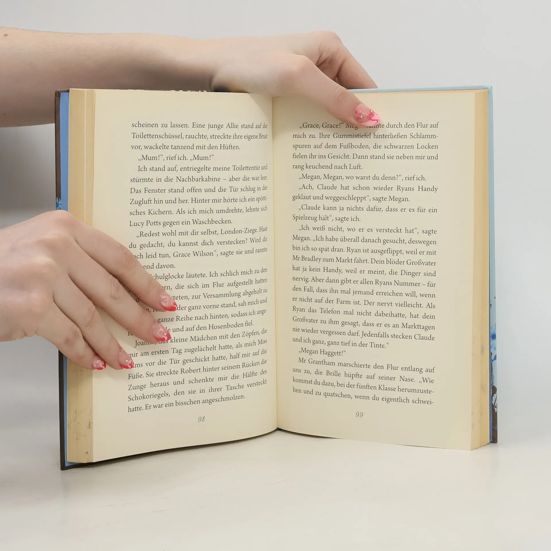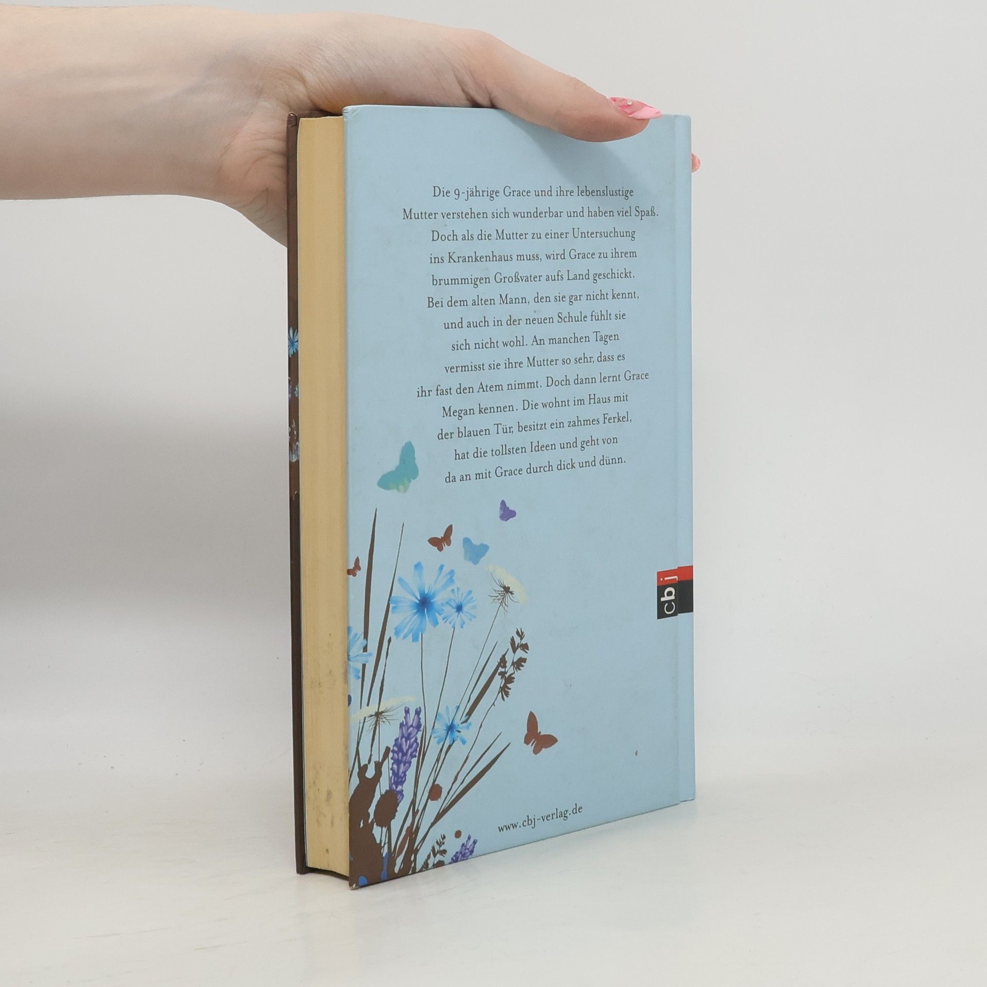 Ein wunderbares Buch, das zu Herzen geht undfröhlich macht Die neunjährige Grace lebt mit ihrer lebenslustigen Mutter im Norden von London und die beiden verstehen sich wunderbar. Als bei der Mutter Krebs festgestellt wird und sie zur Behandlung ins Krankenhaus muss, wird Grace zu ihrem brummigen Großvater aufs Land geschickt. Bei dem alten Mann, den sie gar nicht kennt, und auch in der neuen Schule fühlt sie sich gar nicht wohl. Und das Heimweh nach ihrer Mutter nimmt ihr fast den Atem. Doch im Haus mit der blauen Tür wohnt Megan, ein Mädchen, das ein zahmes Ferkel besitzt, das die tollsten Ideen hat und mit Grace durch dick und dünn geht.