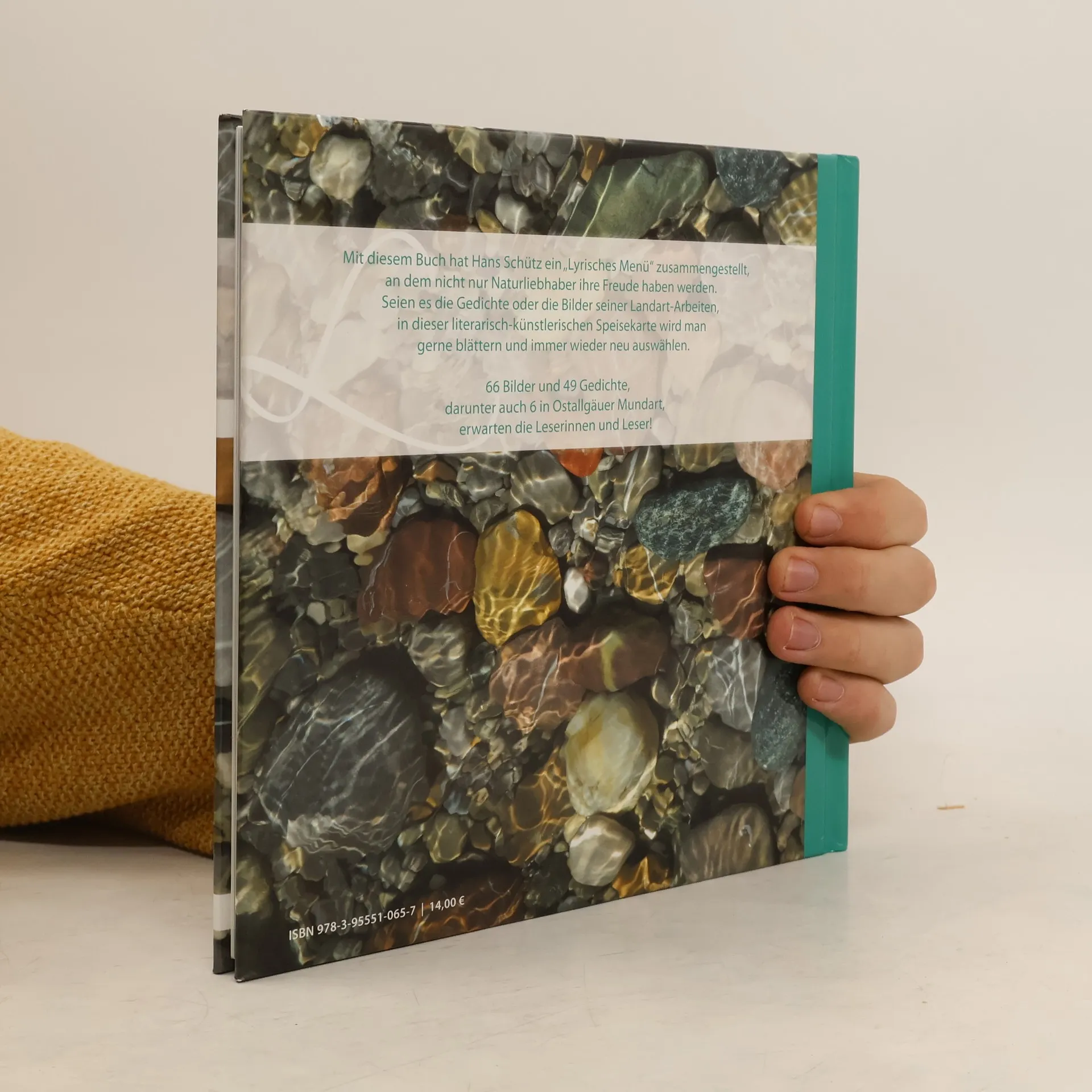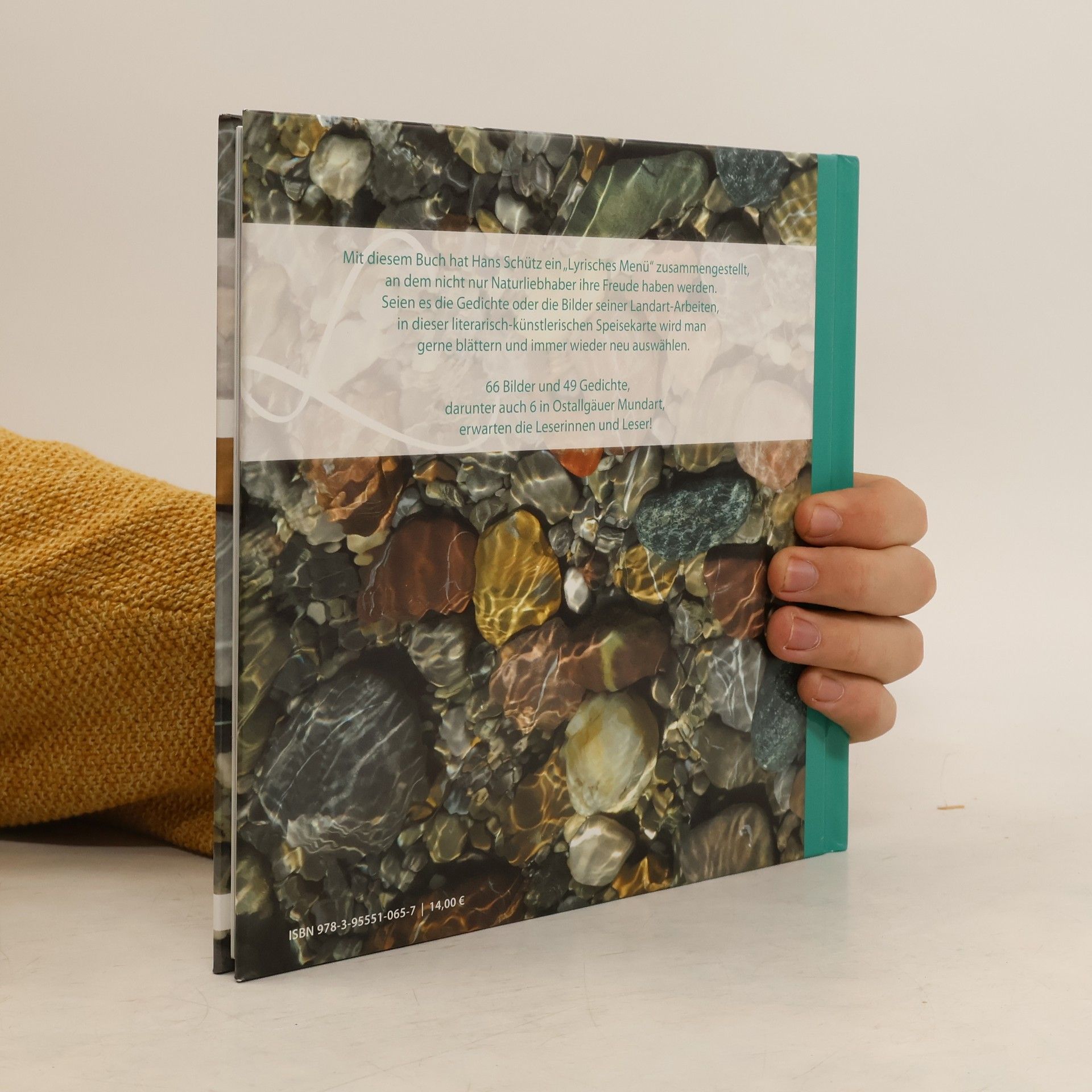 Mit diesem Buch hat Hans Schütz ein „Lyrisches Menü“ zusammengestellt, an dem nicht nur Naturliebhaber ihre Freude haben werden. Seien es die Gedichte oder die Bilder seiner Landart-Arbeiten, in dieser literarisch-künstlerischen Speisekarte wird man gerne blättern und immer wieder neu auswählen. 66 Bilder und 49 Gedichte, darunter auch 6 in Ostallgäuer Mundart, erwarten die Leserinnen und Leser!