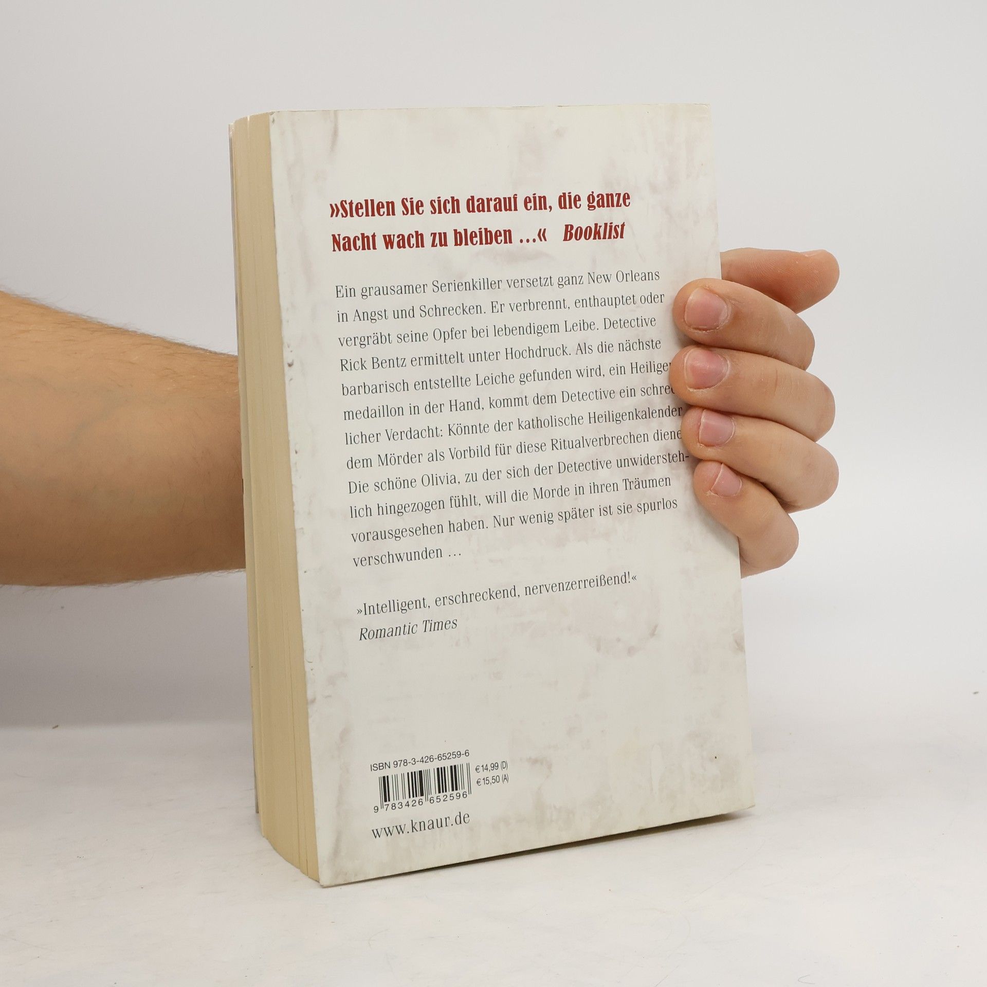 Ein grausamer Serienkiller versetzt ganz New Orleans in Angst und Schrecken. Er verbrennt, enthauptet oder vergräbt seine Opfer bei lebendigem Leibe. Detective Rick Bentz ermittelt unter Hochdruck. Als die nächste barbarisch entstellte Leiche gefunden wird, ein Heiligenmedaillon in der Hand, kommt dem Detective ein schrecklicher Verdacht: Könnte der katholische Heiligenkalender dem Mörder als Vorbild für diese Ritualverbrechen dienen? Die schöne Olivia, zu der sich der Detective unwiderstehlich hingezogen fühlt, will die Morde in ihren Träumen vorausgesehen haben. Nur wenig später ist sie spurlos verschwunden …