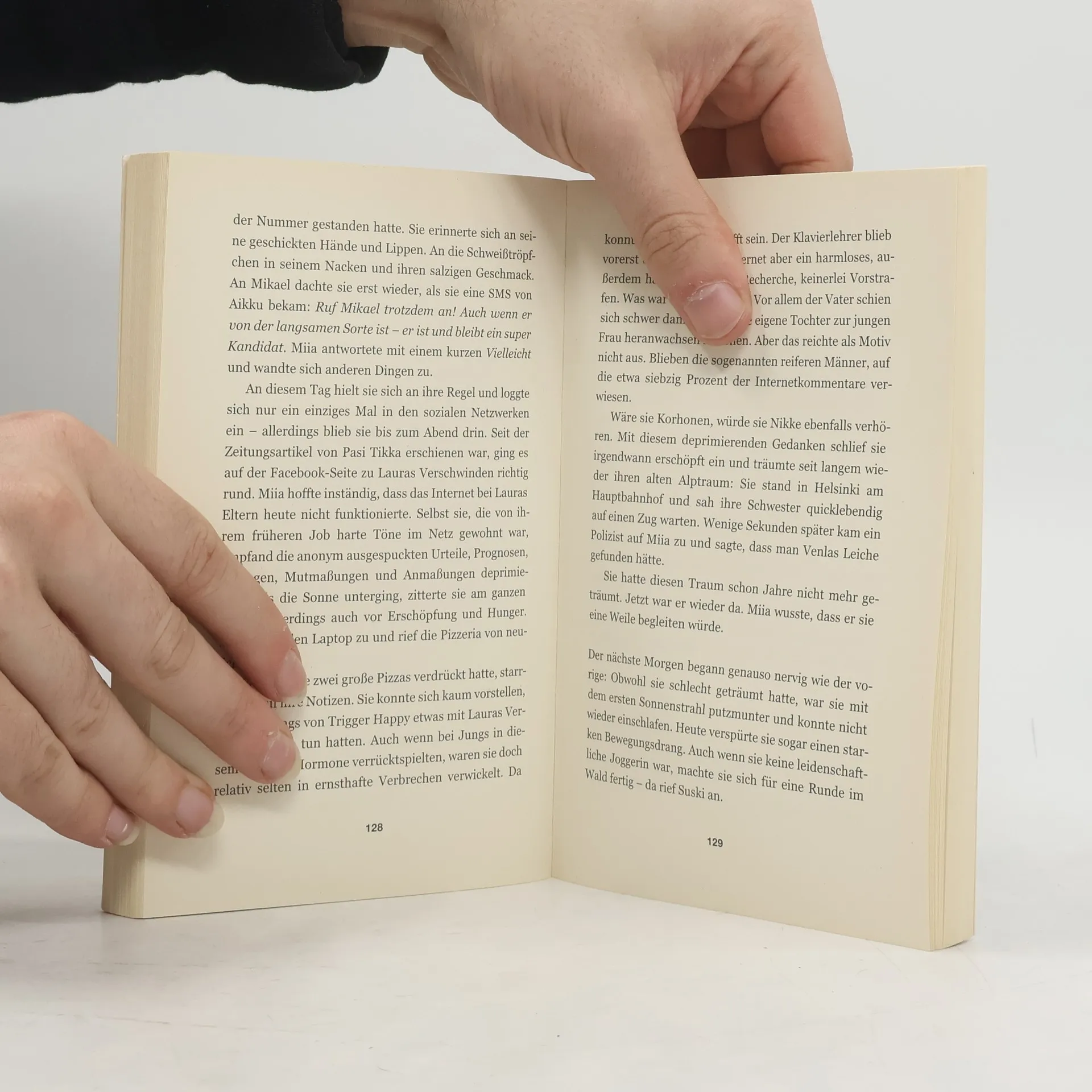„Vermisst. Die 16-jährige Laura Anderson wurde zuletzt am 13.8. um 23 Uhr am Strand von Palokaski gesehen, wo sie mit Freunden feierte. Laura ist schlank, mittelgroß, hat blaue Augen und schwarz gefärbte Haare. Sie trug eine enge weiße Jeans, eine rosa Karobluse und Turnschuhe.“ „Mia ging auf das weiße f auf blauem Grund. Keine Fotos. Keine neuen Kommentare oder Likes. Aber eine Nachricht. Und im selben Moment wusste sie, dass sie keine Sekunde mehr schlafen würde. Die Nachricht kam von Johanna und war kurz: Laura ist tot.“ Mia Pohjavirta musste ihren Job in der Polizei aufgeben, um sich von ihrer Internet-Sucht zu erholen. Als Sonderpädagogin kehrt sie an ihre alte Schule und damit in ihre Heimatstadt zurück, in der Hoffnung auf ein ruhiges Leben. Doch am ersten Schultag nach den Ferien wird die Nachricht über Lauras Verschwinden schnell verbreitet. Ihre verzweifelten Eltern richten eine Facebook-Seite ein, die einen Shitstorm auslöst. Gerüchte über Satanskult, Drogen und Sadomaso-Spiele machen die Runde, und jemand behauptet, Laura in Amsterdam gesehen zu haben. Jeder hat seine eigene Theorie über Lauras Verbleib, doch Mias Bruder Niklas, Psychologe an der Schule, scheint am meisten zu wissen. Der Sommer, der für Mia so hoffnungsvoll begann, verwandelt sich in einen düsteren Albtraum. Teil eins der Palokaski-Trilogie.