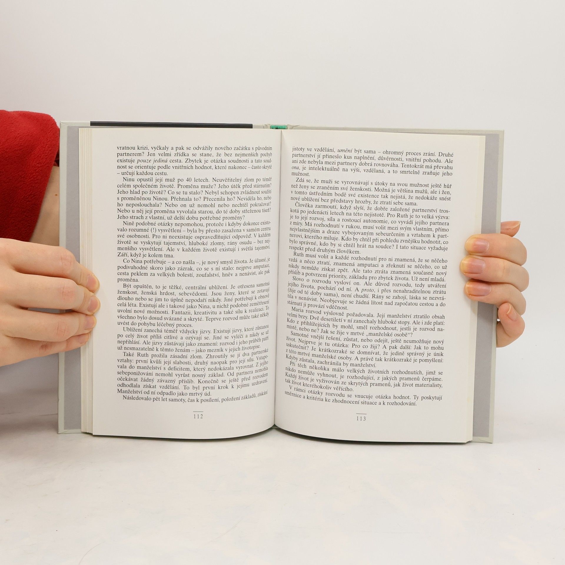 Autorka-terapeutka vychází ve své práci ze sledování konkrétních osudů 103 žen; na jejich výpovědích se tak odvíjí obraz dnešní emancipované ženy-partnerky, která se v průběhu klasického manželství dostává do krize, zkoumá svůj svět a pokouší se ho změnit.