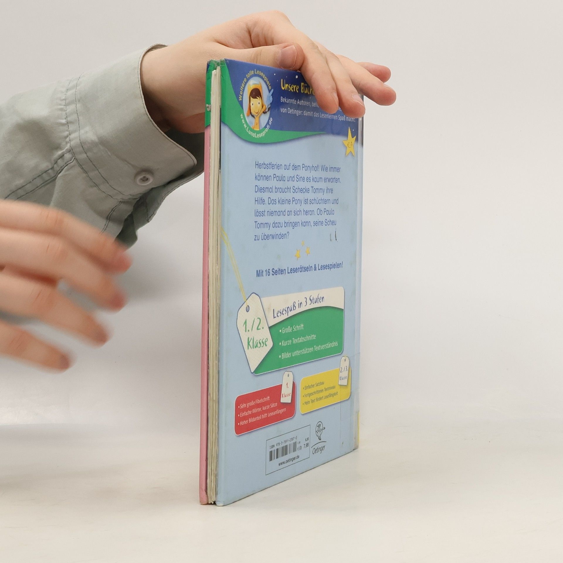Ponyglück für Paula! Hier kann nur Paula helfen! Tom, ein neues Pony auf dem Hof, ist furchtbar scheu und lässt niemanden an sich heran. Seine frühere Besitzerin hat ihn zu viel allein gelassen. Aber Paula gibt nicht auf. Hartnäckig und mit den Geheimnissen einer Ponyflüsterin nähert sie sich Tom immer wieder – bis er ihr aus der Hand frisst! Band 3 der neuen Pony-Serie mit Paula: ein Herzensbuch für Mädchen über Pferde und Freundschaft! Lesen lernen mit „Büchersterne“ für die 1./2. Klasse: große Schrift, kurze Textabschnitte und viele Bilder, die das Textverständnis von Leseanfängern unterstützen. Dazu 16 Seiten Leserätsel und Lesespiele im Anhang.