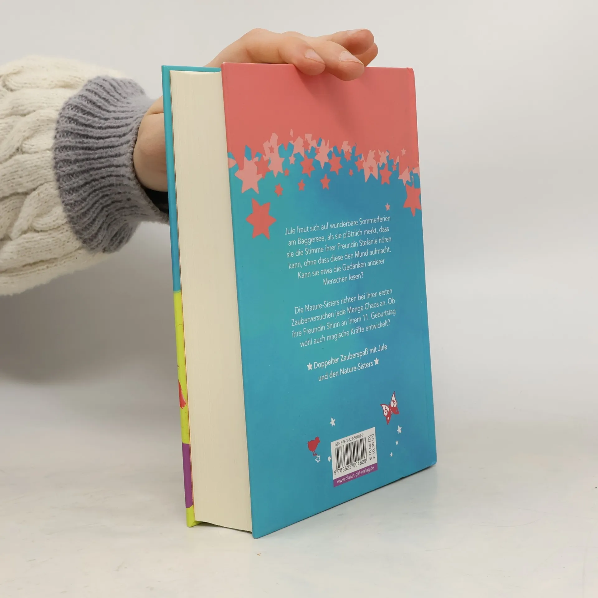 Jule freut sich auf wunderbare Sommerferien am Baggersee, als sie plötzlich merkt, dass sie die Stimme ihrer Freundin Stefanie hören kann, ohne dass diese den Mund aufmacht. Kann sie etwa die Gedanken anderer Menschen lesen? Die Nature-Sisters richten bei ihren ersten Zauberversuchen jede Menge Chaos an. Ob ihre Freundin Shirin bei ihrem 11. Geburtstag wohl auch magische Kräfte entwickelt? Doppelter Zauberspaß mit Jule und den Nature-Sisters