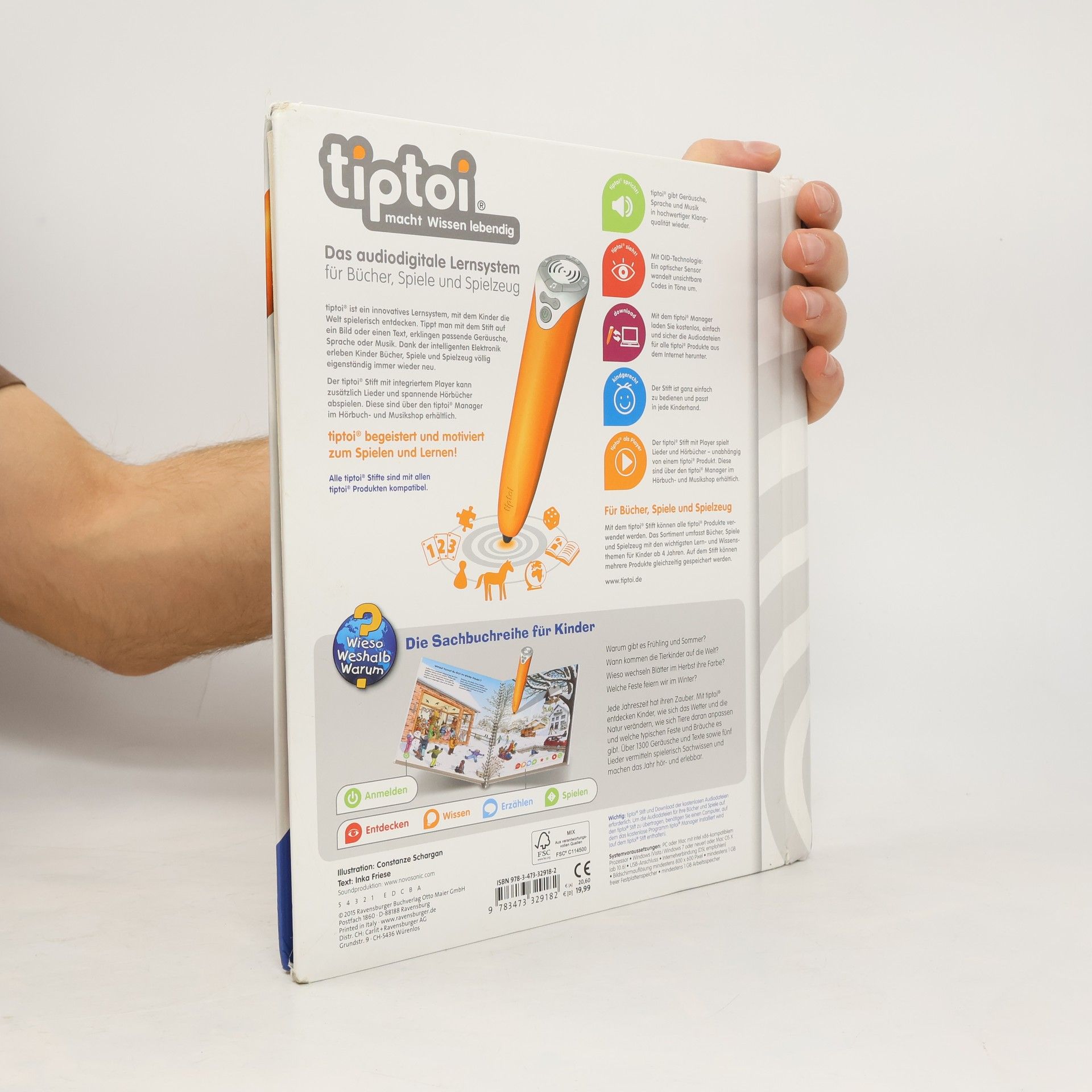 Frühling, Sommer, Herbst und Winter! Jede Jahreszeit hat ihren Zauber, ihre Geräusche und Lieder: Im Frühling sprießen die Bäume und die Vögel zwitschern um die Wette. Im Sommer zirpen die Grillen und summen die Bienen. Im Herbst erfüllen Kindergesänge und das Licht unzähliger Laternen die Straßen. Im Winter lockt knirschender Schnee Groß und Klein nach draußen. Authentische Geräusche, detailreiche Bilder und liebevolle Sachtexte und Dialoge lassen die Jahreszeiten auf neue Weise lebendig werden. Was macht der Traktor auf dem Feld? Wann kommt die Feuerwehr? Wie groß wird ein Pony? Die interaktive Sachbuchreihe tiptoi Wieso? Weshalb? Warum? beantwortet wichtige Kinderfragen auf Augenhöhe. Auf den liebevoll illustrierten Seiten tauchen die Kinder in eine Welt ein, die durch zahlreiche authentische Geräusche lebendig wird. Das Sachwissen wird altersgerecht erklärt und ist fachlich geprüft. Die Kinder können sich dank der einfachen und intuitiven Nutzung mit dem tiptoi-Stift das Wissen selbst erschließen. Sie lernen, Zusammenhänge zu begreifen und erfahren spannende Informationen über ihren Alltag und ihre Umwelt. Tolle Geschichten, Lieder und unterhaltsame Spiele laden dabei immer wieder zum selbstständigen Entdecken und Erforschen ein. tiptoi-Stift nicht enthalten. Muss separat erworben werden.