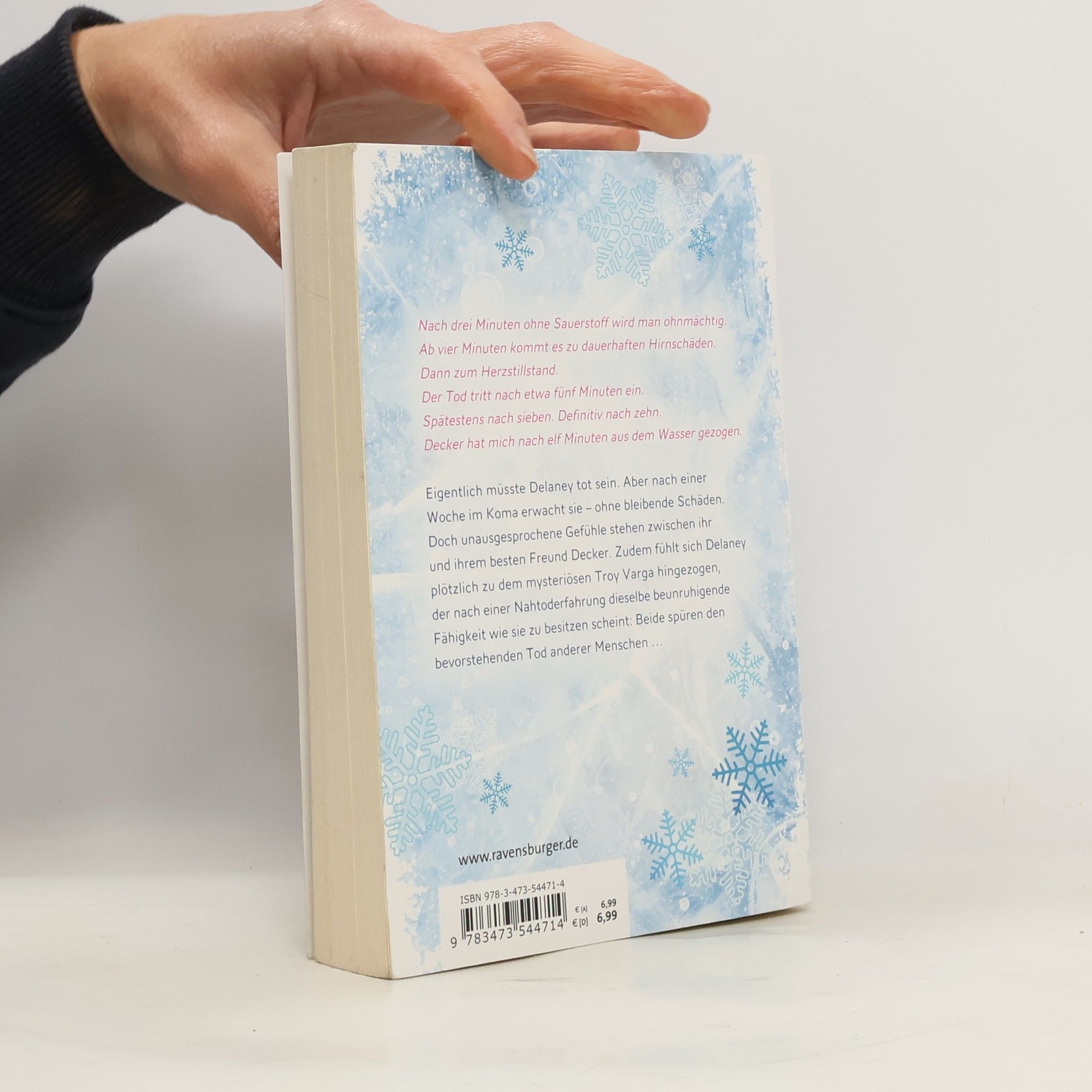 Als die 17-jährige Delaney Maxwell ins Eis einbricht, scheint ihr Schicksal besiegelt. Ganze elf Minuten ist sie unter Wasser, bis ihr bester Freund Decker sie aus dem eiskalten See herausziehen kann – und nach allem, was die Ärzte sagen, sollte sie eigentlich tot sein. Doch nur sechs Tage später erwacht Delaney im Krankenhaus – zum absoluten Erstaunen der Ärzte und trotz schwerer Gehirnschäden ohne erkennbare Beeinträchtigung. Wieder zu Hause, stürzt sich Delaney in ihr altes Highschool-Leben, doch nach und nach zeigen sich Risse in ihrem Alltag und ihrer Wahrnehmung. Unausgesprochene Gefühle zwischen ihr und ihrem besten Freund Decker belasten Delaney zusätzlich. Und aus irgendeinem Grund fühlt sie sich plötzlich zu dem mysteriösen Troy Varga hingezogen, der nach einer Nahtoderfahrung dieselbe schreckliche Fähigkeit wie sie zu besitzen scheint: Beide spüren den bevorstehenden Tod anderer Menschen.