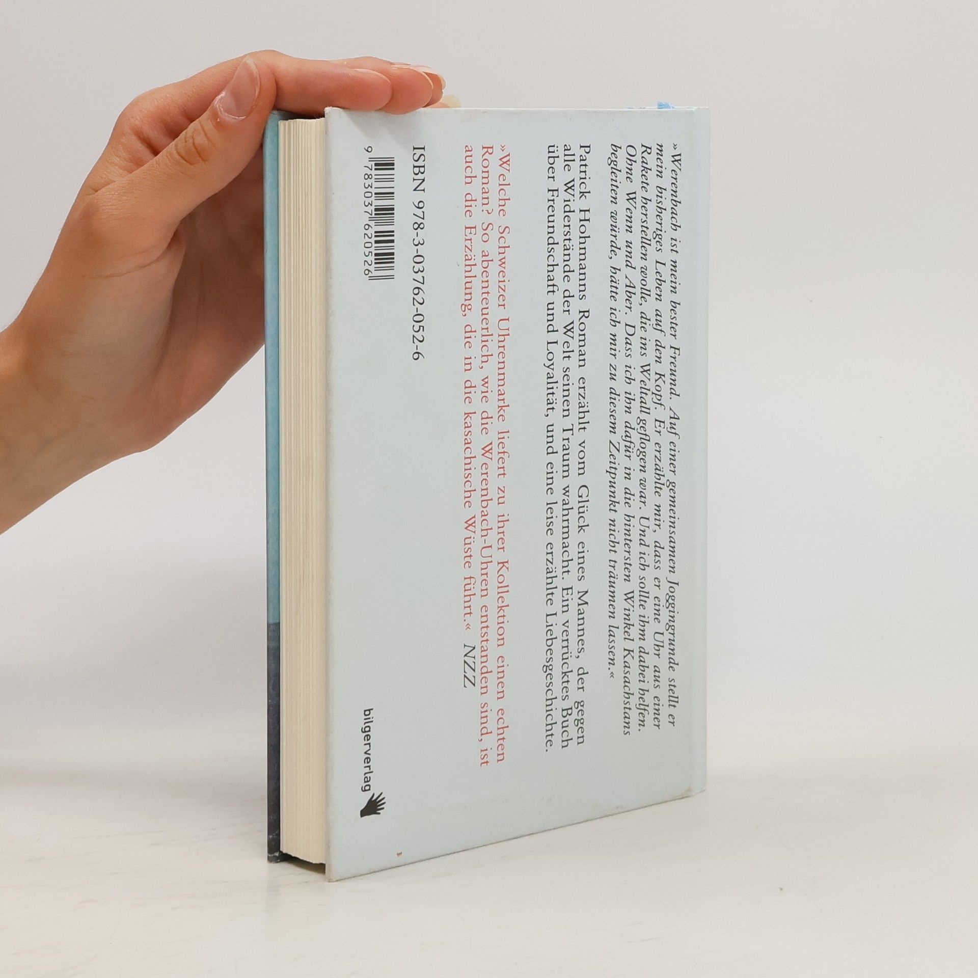 Patrick Hohmann debütiert mit einem Roman, der vom Glück eine Mannes erzählt, der gegen alle Widerstände der Welt seinen Traum wahrmacht. Es ist ein verrücktes Buch über Freundschaft und Loyalität, und eine leise erzählte Liebesgeschichte. Ja, genau so sollen Bücher sein, die uns aus der Banalität des Alltags entführt, auf Schotterwegen, durch Wüsten und bis über den Rand des Horizonts hinaus. Werenbachs Uhr ist eine Geschichte, die uns den Glauben an die Realisierbarkeit unserer Träume zurückgibt. Ein packender Pageturner. Diese Erzählung beruht auf einer wahren Begebenheit: 'Werenbach ist mein bester Freund. Auf einer gemeinsamen Joggingrunde stellt er mein bisheriges Leben auf den Kopf. Er erzählte mir, dass er eine Uhr aus einer Rakete herstellen wolle, die ins Weltall geflogen war. Und ich sollte ihm dabei helfen. Ohne Wenn und Aber. Dass ich ihn dafür in die hintersten Winkel Kasachstans begleiten würde, hätte ich mir zu diesem Zeitpunkt nicht träumen lassen.'