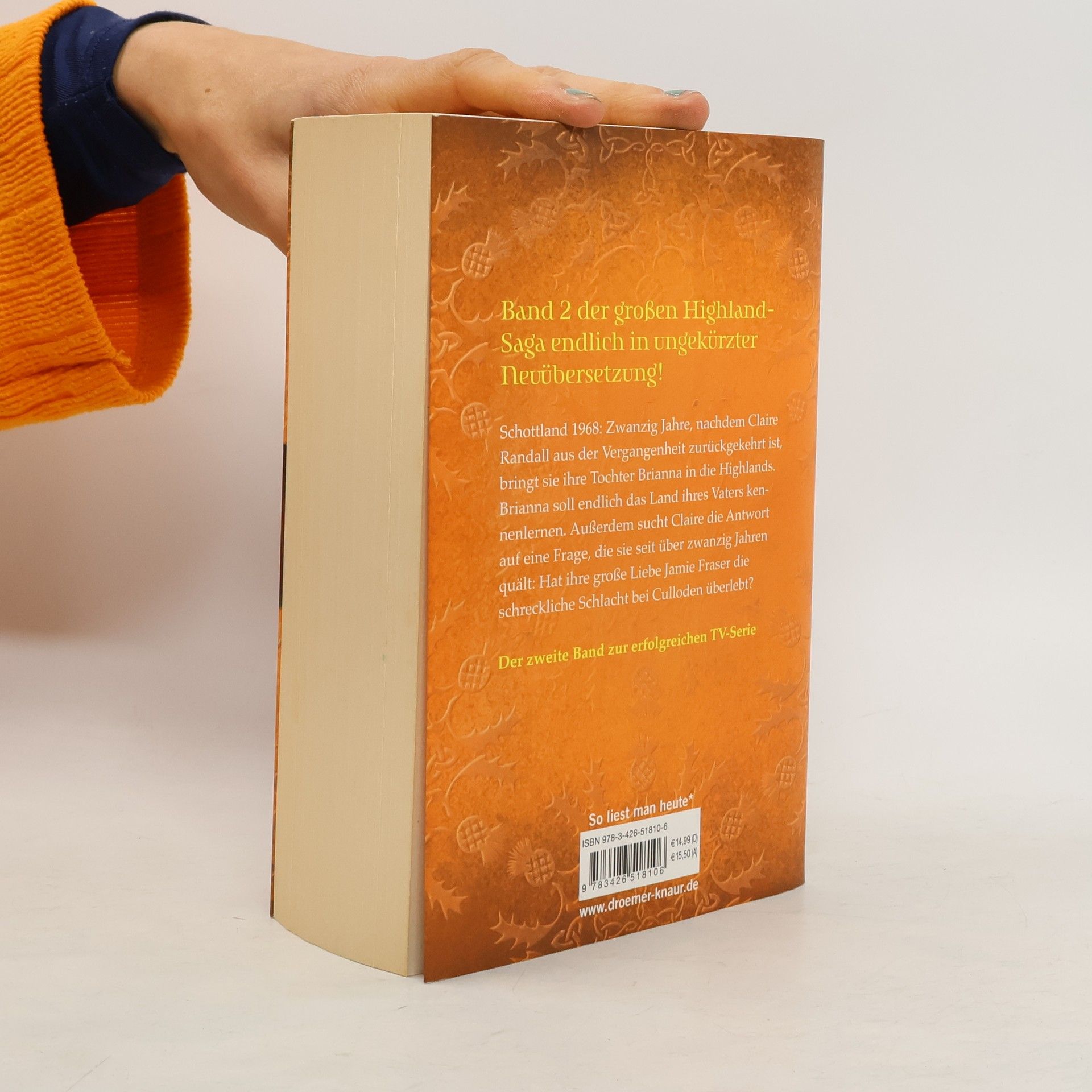 Dramatisch und hochspannend:In Band 2 von Diana Gabaldons Highland-Saga kehrt Claire Randall mit ihrer Tochter Brianna zum magischen Steinkreis zurück Die schottischen Highlands 1968: Zwanzig Jahre ist es her, dass Claire Randall durch einen magischen Steinkreis ins Jahr 1743 gereist ist. Zwar hat sie dort in Jamie Fraser die Liebe ihres Lebens gefunden, doch schließlich musste sie ins 20. Jahrhundert zurückkehren – zu ihrer eigenen Sicherheit und der ihrer Tochter Brianna.Doch nun ist für Claire die Zeit gekommen, noch einmal in die Highlands zu reisen, denn Brianna soll endlich die Wahrheit erfahren: über den magischen Steinkreis, Claires Zeitreise und ihre große Liebe Jamie Fraser. Außerdem hofft Claire, die Antwort auf die eine Frage zu finden, die sie seit über 20 Jahren quält: Konnte Jamie die schreckliche Schlacht von Culloden überleben? Mit ihrer Outlander-Serie hat Bestseller-Autorin Diana Gabaldon ein Universum erschaffen, das die Leser von exzellent recherchierten historischen Romanen und von großen Liebesgeschichten gleichermaßen begeistert.