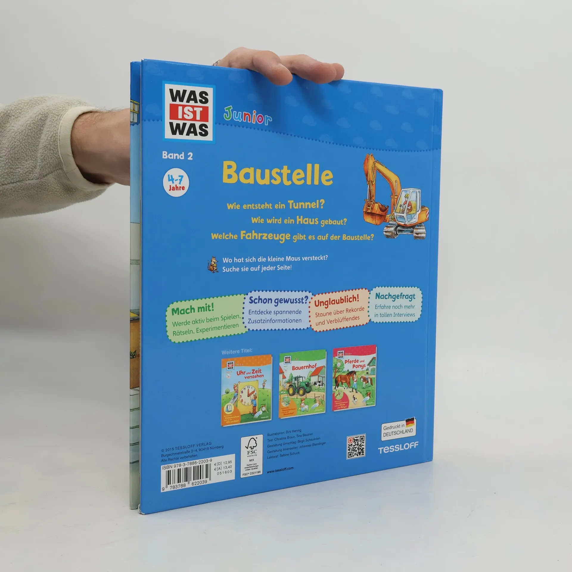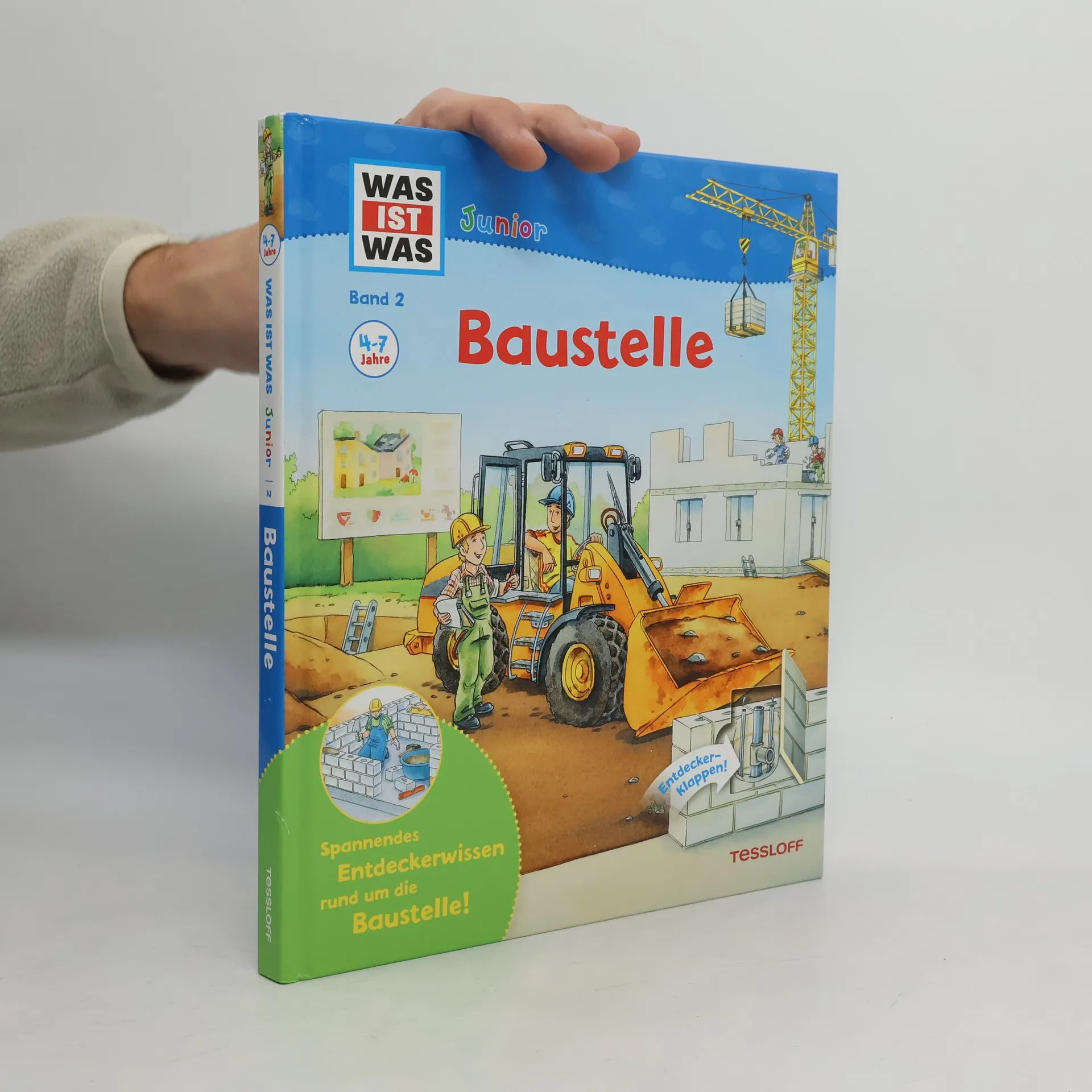 Überall wird gebaut - Stress für manche Eltern, ein Abenteuer für die Jüngsten. Die „Warum?“-Fragen häufen sich: Wie funktionieren Bagger, Kran und Betonmischer? Was tun Bauarbeiter, Maurer und Installateur? Wie entstehen Straßen, Brücken, Tunnel? Das erste Sachbuch gibt altersgerechte Antworten. Jede Doppelseite beschreibt einen Prozess. Neu gewonnenes Wissen kann anhand der Entdecker-Klappen, der kleinen Rätsel und Spiele überprüft und vertieft werden. Von der Baustelle führt die Reihe WAS IST WAS Junior geradewegs zu rund 30 anderen Sachthemen, die ganz nach Lust und Laune durchstreift werden können, darunter Bauernhof und Feuerwehr, Meer und Wald, Erde und Weltraum.