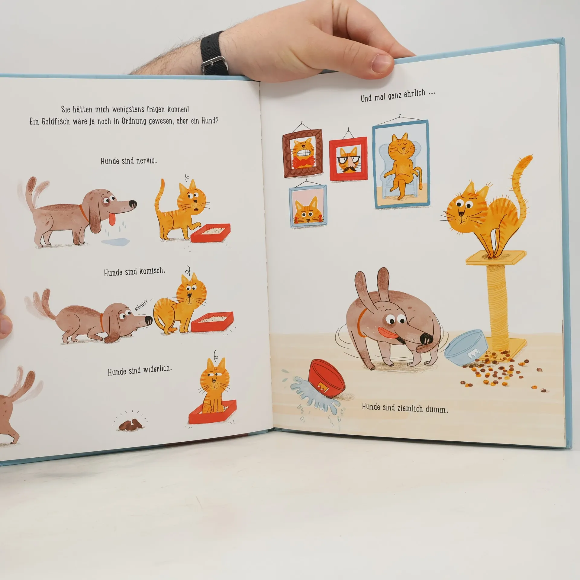 Wer ist der König hier im Haus? Natürlich der Kater! Und dieser König macht ganz schön viel für seine Menschen: Er spielt mit ihnen, und tagsüber schläft er ausgiebig, damit er sie nachts gut beschützen kann. Doch was haben seine Menschen sich nur dabei gedacht, einen Hund ins Haus zu holen? Ein Goldfisch wäre ja noch in Ordnung gewesen, aber ein Hund?! Der ist doch langweilig und widerlich und ziemlich dumm. Außerdem scheint er nicht zu verstehen, dass es gewisse Regeln gibt. Und was noch schlimmer ist: Alle anderen scheinen das plötzlich auch vergessen zu haben …