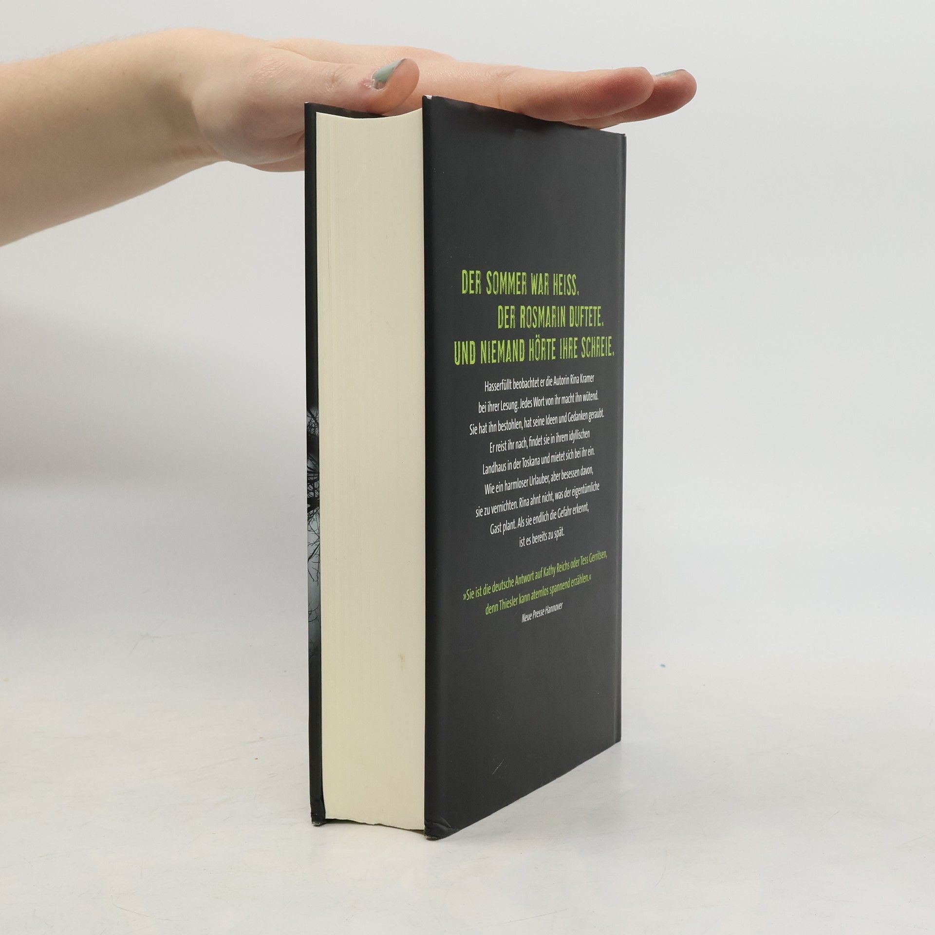Nervenzerreißende Spannung in der Toskana Hasserfüllt beobachtet er die Autorin Rina Kramer bei ihrer Lesung. Jedes Wort von ihr macht ihn wütend. Sie hat ihn bestohlen, hat seine Ideen und Gedanken geraubt. Er reist ihr nach, findet sie in ihrem idyllischen Landhaus in der Toskana und mietet sich bei ihr ein. Wie ein harmloser Urlauber, aber besessen davon, sie zu vernichten. Rina ahnt nicht, was der eigentümliche Gast plant. Als sie endlich die Gefahr erkennt, ist es bereits zu spät.