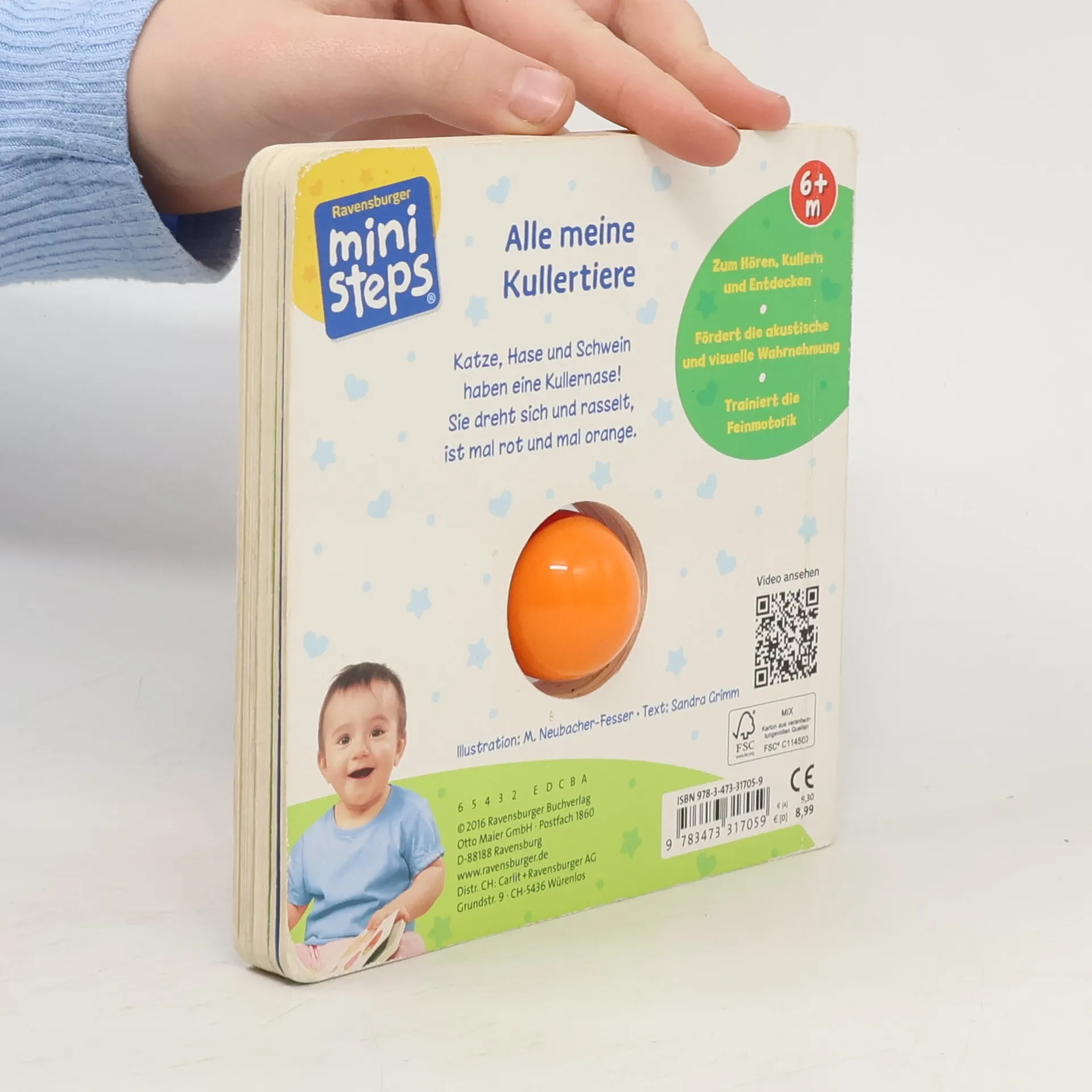 Was rasselt denn hier? Viele lustige Kullernasen-Tiere! Die stabile orange-rote Kugel im Buch rasselt fröhlich, wenn Babys sie anstupsen und drehen. Das regt spielerisch alle Sinne der Kleinsten an und fördert damit ihre Entwicklung. Dazu gibt es viele bekannte Motive zum Entdecken und Wiedererkennen und lustige Reime für die Kleinsten. Das handliche Format macht dieses Spielbuch zum idealen Begleiter im Kinderwagen, Rucksack oder in der Wickeltasche. Vertrauen schenken. Das Leben entdecken. Babys und Kleinkinder wollen mit allen Sinnen die Welt entdecken. ministeps begleitet die Kleinen auf ihren ersten Schritten ins Leben. Die vielfältigen ministeps Bücher, Spiele und Spielsachen bieten für jedes Kind die optimalen Sinnesanreize. Sie fördern das Erkennen von Farben, Formen und Bildern, sie laden zum (Be-) Greifen ein und ermutigen zum Krabbeln und Sprechen. Alle ministeps Produkte sind von höchster Ravensburger Qualität. Und das spüren nicht nur die Kleinen. Auch die Großen haben die Sicherheit, den Kindern immer ideale Anreize zu bieten.