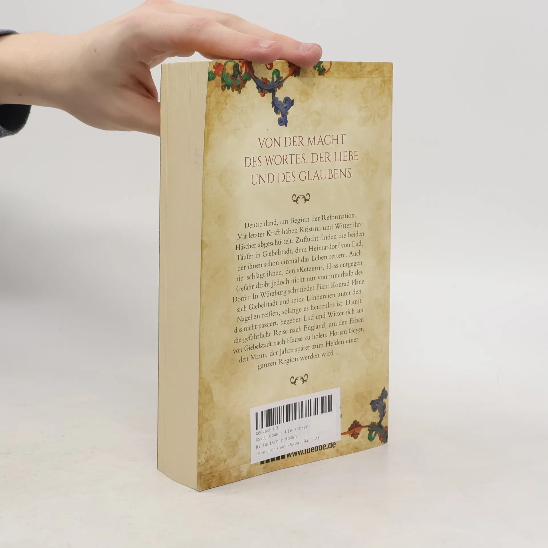 Deutschland, am Beginn der Reformation. Mit letzter Kraft haben Kristina und Witter ihre Häscher abgeschüttelt. Zuflucht finden die beiden Täufer in Giebelstadt, dem Heimatdorf von Lud, der ihnen schon einmal das Leben rettete. Auch hier schlägt ihnen, den „Ketzern“, Hass entgegen. Gefahr droht jedoch nicht nur von innerhalb des Dorfes: In Würzburg schmiedet Fürst Konrad Pläne, sich Giebelstadt und seine Ländereien unter den Nagel zu reißen, solange es herrenlos ist. Damit das nicht passiert, begeben Lud und Witter sich auf die gefährliche Reise nach England, um den Erben von Giebelstadt nach Hause zu holen: Florian Geyer, den Mann, der Jahre später zum Helden einer ganzen Region werden wird ...