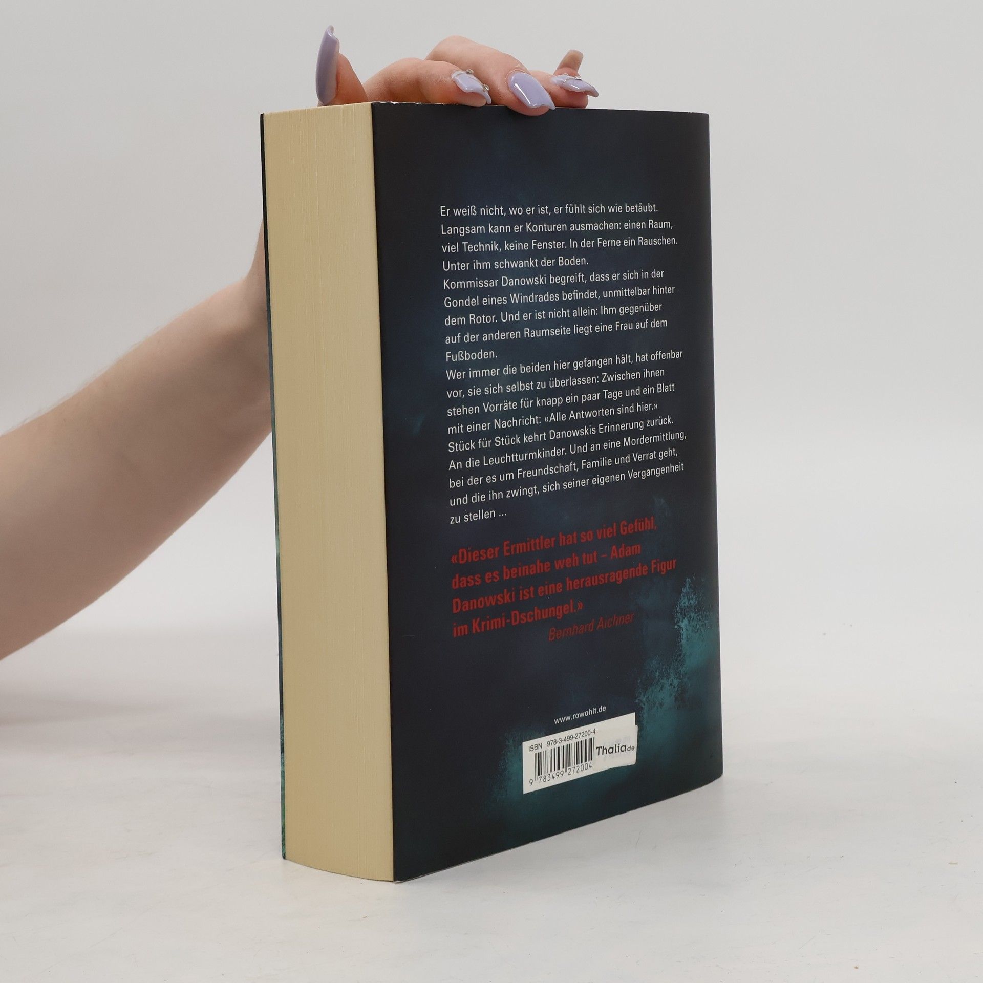 Er weiß nicht, wo er ist, fühlt sich wie betäubt. Langsam kann er Konturen ausmachen: einen Raum, viel Technik, keine Fenster. In der Ferne ein Rauschen. Unter ihm schwankt der Boden. Langsam begreift Kommissar Danowski, dass er sich in der Gondel eines Windrades befindet, unmittelbar hinter dem Rotor. Und er ist nicht allein: ihm gegenüber auf der anderen Raumseite liegt eine Frau auf dem Fußboden. Wer immer die beiden hier gefangen hält, hat offenbar vor, sie sich selbst zu überlassen: Zwischen ihnen stehen Vorräte für knapp ein paar Tage, und ein Blatt mit einer Nachricht: «Alle Antworten sind hier.» Stück für Stück kehrt Danowskis Erinnerung zurück. An die Leuchtturmkinder. Und an eine Mordermittlung, bei der es um Freundschaft, Familie und Verrat geht, und die ihn zwingt, sich seiner eigenen Vergangenheit zu stellen ...