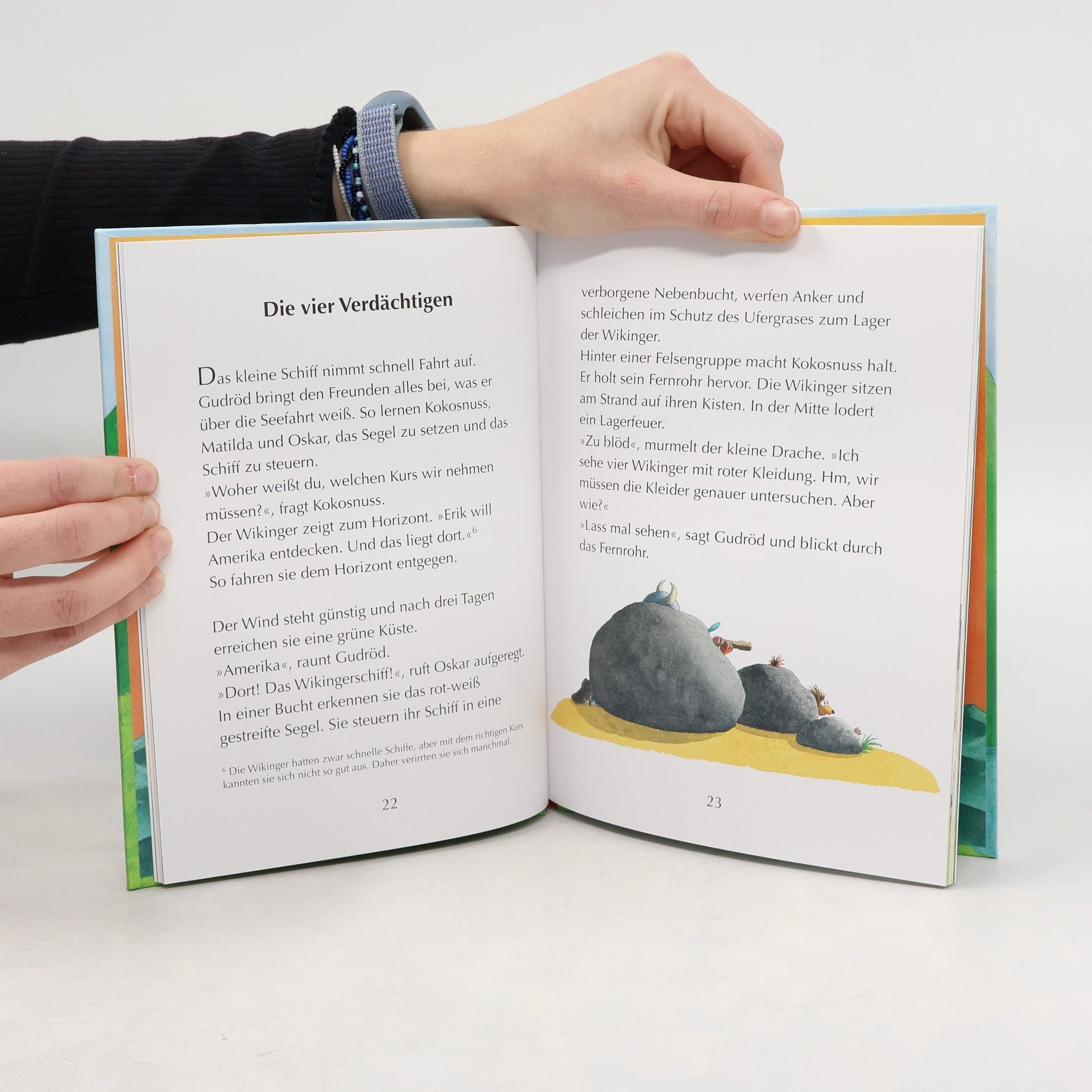 Buchset mit 3D-Figur „Kokosnuss“ Kokosnuss, Matilda und Oskar trauen ihren Augen nicht, als sie auf der Dracheninsel einen echten Wikinger treffen. Überraschenderweise ist Gudröd gar nicht so wild und gefährlich, wie es von Wikingern immer behauptet wird, denn er sitzt in der Patsche ... Kokosnuss will Gudröd helfen und gerät dabei in ein turbulentes Wikinger-Abenteuer! Die PVC-freie Kokosnuss-Figur ist 6 cm hoch und 4 cm breit. Ausstattung: Mit fbg. Illustrationen