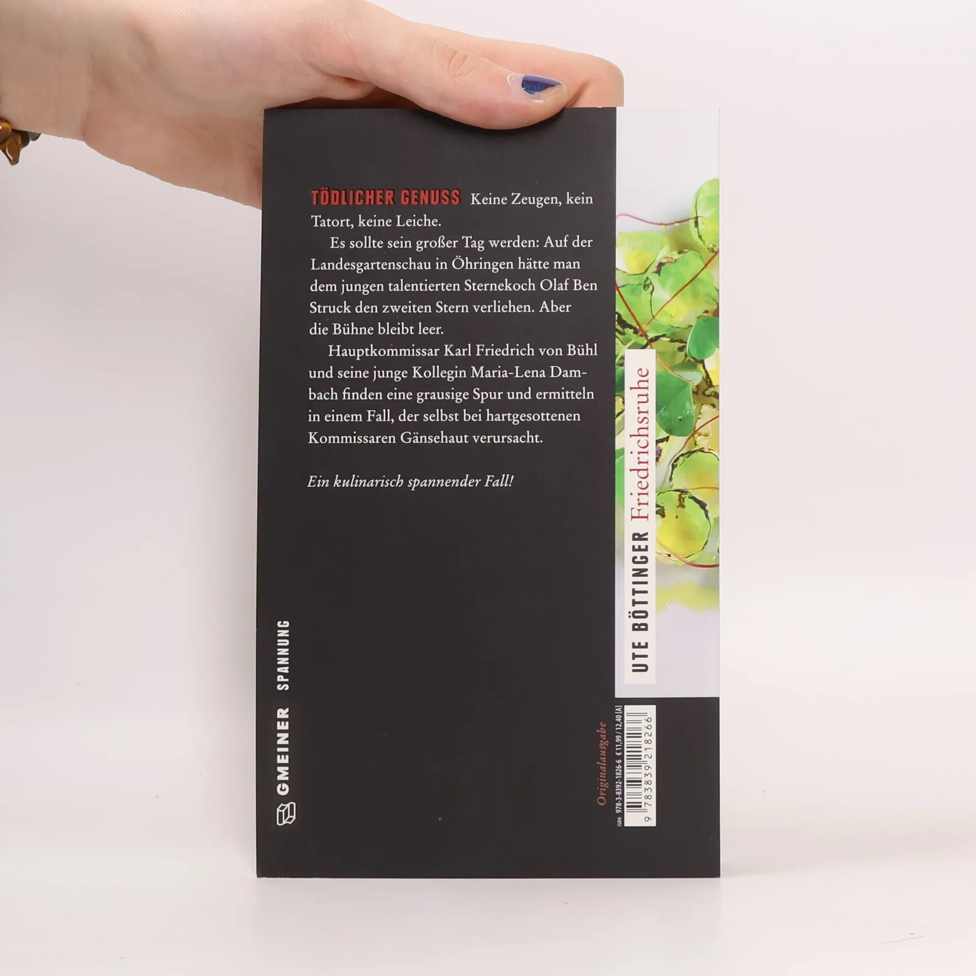 Keine Zeugen, kein Tatort, keine Leiche. Es sollte sein großer Tag werden: Auf der Landesgartenschau in Öhringen hätte man dem jungen talentierten Sternekoch Olaf Ben Struck den zweiten Stern verliehen. Aber die Bühne bleibt leer. Hauptkommissar Karl Friedrich von Bühl und seine junge Kollegin Maria-Lena Dambach finden eine grausige Spur und ermitteln in einem Fall, der selbst bei hartgesottenen Kommissaren Gänsehaut verursacht.