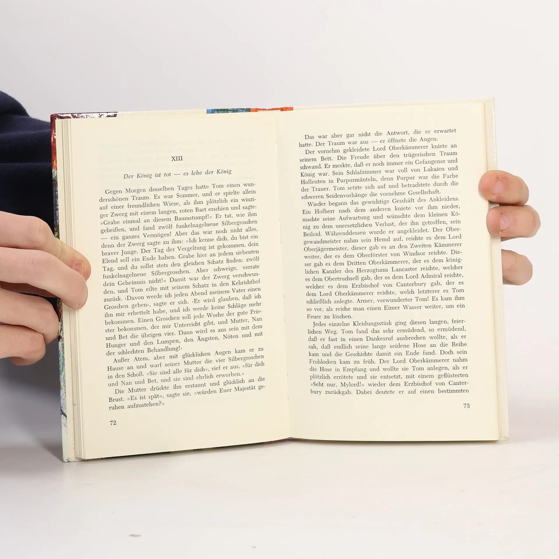 Tom und Edward kommen am gleichen Tag des Jahres 1537 zur Welt. Während der Bettelknabe Tom sich ein Leben am Hof erträumt, hätte Edward nichts lieber als eine ganz normale Kindheit – denn er ist Prinz und der Thronfolger seines Landes. Eines Tages begegnen sich die beiden Jungen, die sich ähnlich sehen wie Zwillinge. Aus Spaß tauschen sie ihre Kleidung und gehen ihrer Wege – in zwei Leben mit neuen Rollen, turbulenten Verwechslungen und vielen spannenden Erlebnissen. Wie die Geschichten um Tom Sawyer und Huckleberry Finn schrieb Mark Twain seinen Abenteuerroman vor allem für junge Leser.