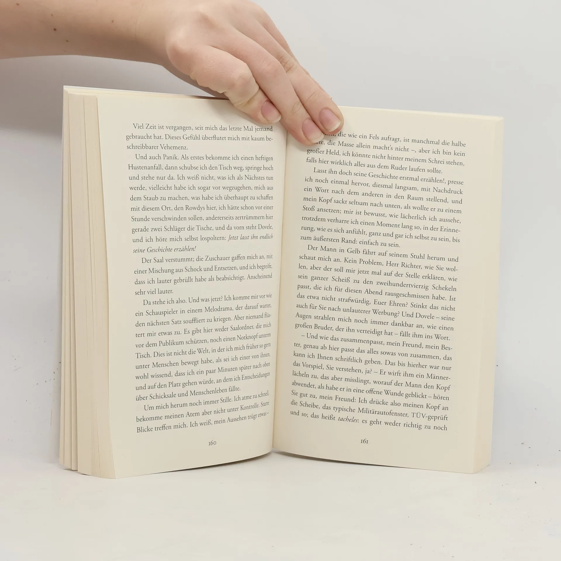 Kann Humor Leben retten? Oder zumindest das eines Jungen? Für eine gute Pointe gab Dovele schon immer alles. Als Kind lief er oft auf den Händen – um seine Mutter zum Lachen zu bringen und damit ihm keiner ins Gesicht schlug. Heute steht er ein letztes Mal in einer Kleinstadt in Israel auf der Bühne. Er hat seinen Jugendfreund, einen pensionierten Richter, eingeladen. Im Laufe des Abends erzählt der Comedian zwischen vielen Witzen eine tragische Geschichte aus seiner Jugend. Es geht um Freundschaft und Familie, Liebe, Verrat und eine sehr persönliche Abrechnung auf dem Weg zu einer Beerdigung. Dem Kleinstadtpublikum ist das Lachen vergangen. Den Leser hält David Grossman mit diesem grandiosen Roman bis zur letzten Zeile gefangen.