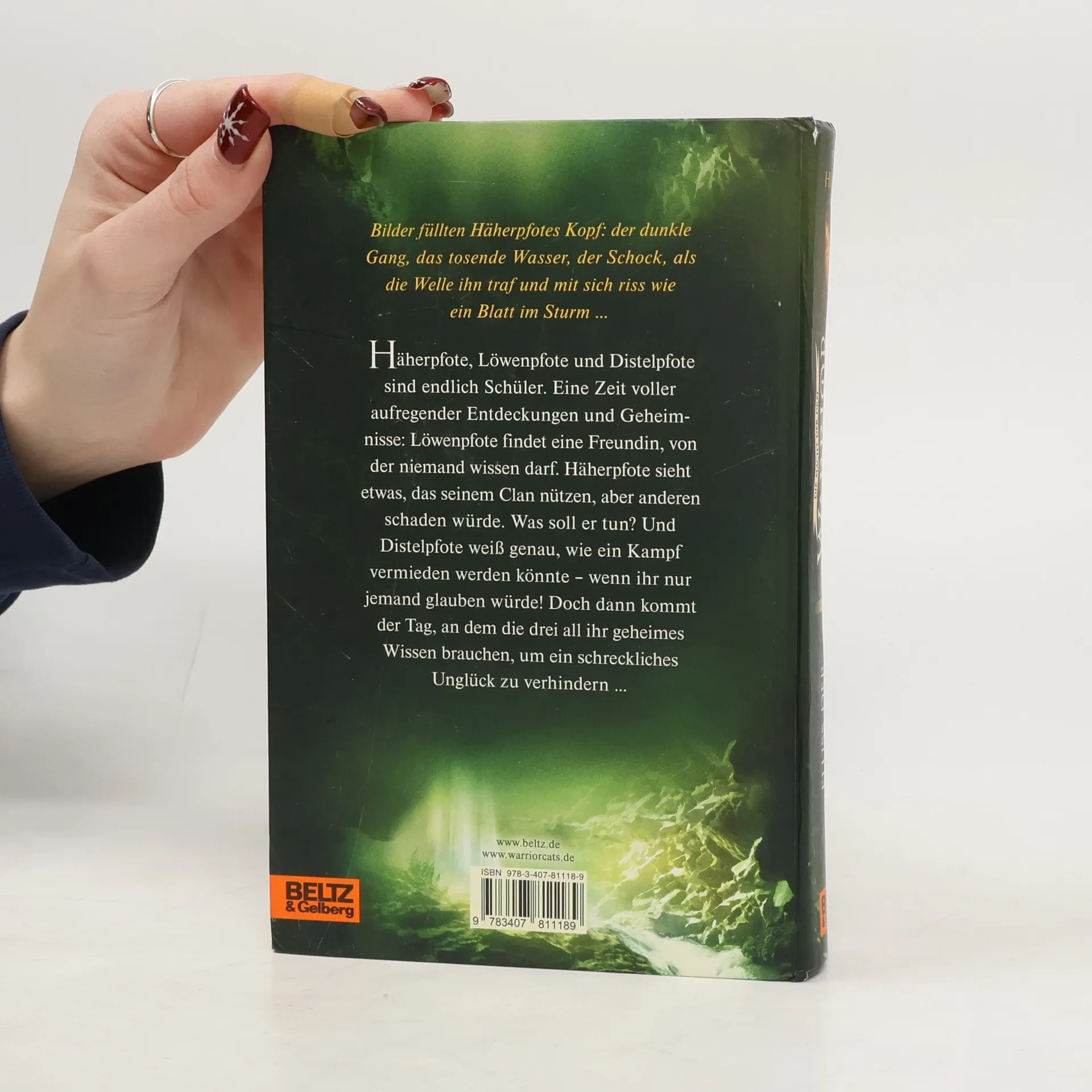 Bilder füllten Häherpfotes Kopf: der dunkle Gang, das tosende Wasser, der Schock, als die Welle ihn traf und mit sich riss wie ein Blatt im Sturm, während er nach Luft schnappte und doch nur Wasser zum Atmen fand. Löwenpfote, Häherpfote und Distelpfote sind endlich Schüler. Eine Zeit voller neuer, aufregender Entdeckungen – und Geheimnisse: Löwenpfote findet einen Freund, doch er muss ihn vor seinem Clan verbergen. Häherpfote sieht etwas, das seinem Clan nützen, aber anderen schaden würde. Was soll er tun? Und Distelpfote weiß genau, wie ein schrecklicher Kampf verhindert werden könnte – wenn ihr nur jemand glauben würde! Gefährliche Prüfungen und folgenreiche Erkenntnisse stehen den dreien bevor. Und bei allem scheint es, als wollten dunkle Mächte die Geschwister auseinanderreißen ...